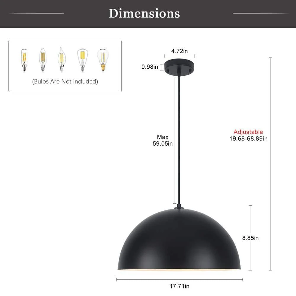 - Size of pendant lights:17.71 in. wide x 8.85 in. high shade. ceiling canopy: 4.72 in. in diameter, adjustable rope maximum height is 59.05 in.. this farmhouse chandelier will fit any incandescent or LED bulb with a standard E26 base, (bulb not included, 60W max.), when used with a dimmable bulb and compatible dimmer switch, the ceiling pendant is fully dimmable