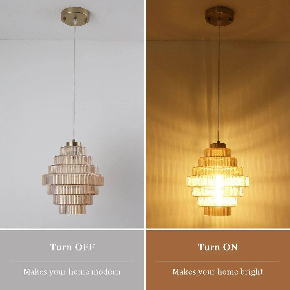 - Unique striped glass appearance: the pendant showcases a unique striped glass shade that enhances the warm lighting of your space, creating a cozy and inviting atmosphere for any room