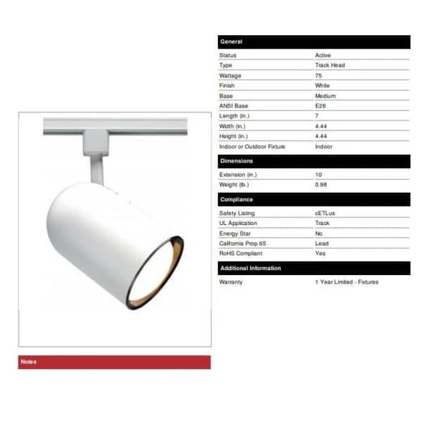 This collection is well known for quality, style and value; this transitional track head is no exception. Expertly pairing a charming white finish and easy to find incandescent bulbs, this fixture is both functional and picturesque. This well-rounded track head is sure to satisfy your indoor lighting needs.