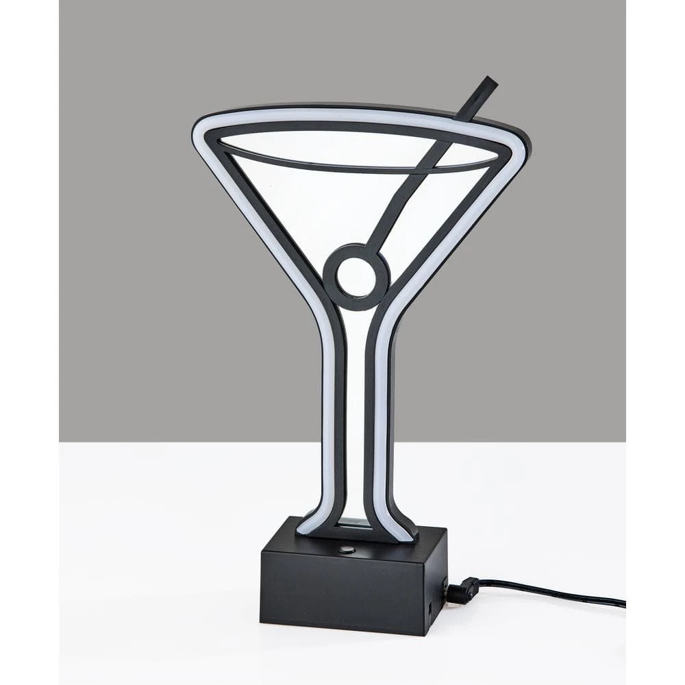- Martini glass shaped light features a mirrored plastic construction with neon border for a retro feel