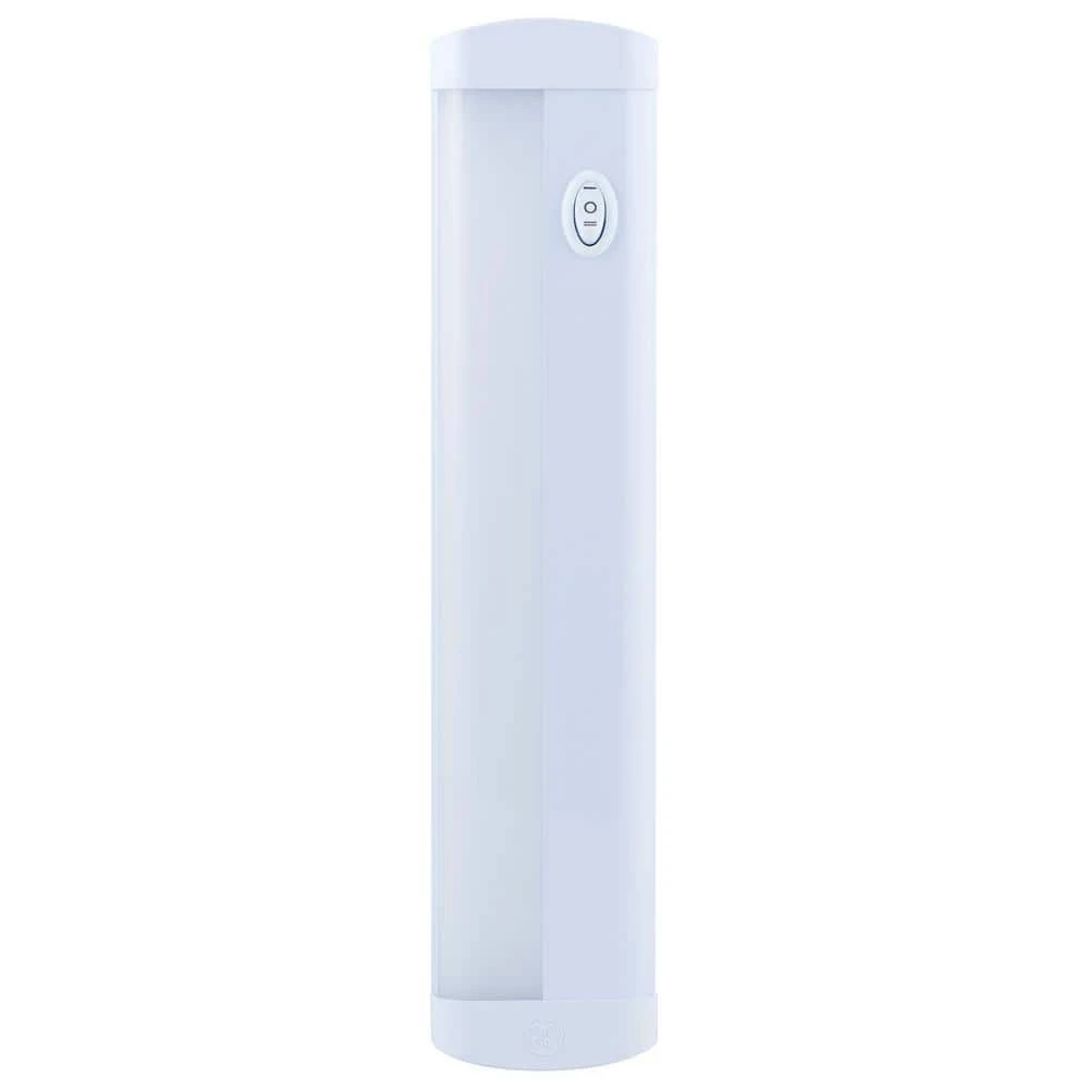 The 10 in. GE plug-in LED light fixture is great for providing light in your kitchen, home office or studio. The high-powered LED light source provides 350 lumens of clean white light, perfect for highlighting your home’s naturally dark areas. This plug-in light fixture is linkable with up to 40 additional LED light fixtures and has a high (350 lumen), low (88 lumens), off rocker switch. This light is UL listed and comes with a 3-year limited warranty.