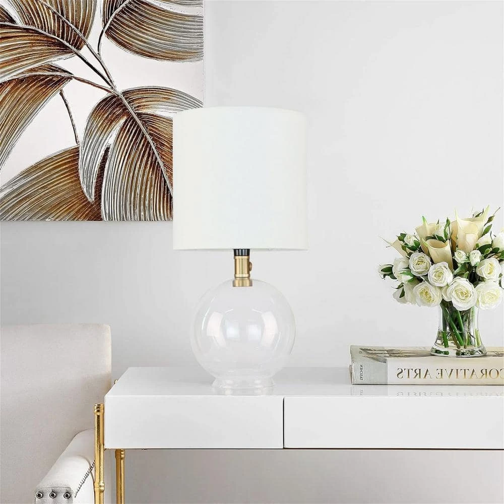 - Minimalist design: with a minimalist aesthetic, this lamp features a beige linen open-top shade and a clear spherical glass base, its elegant and sleek appearance enhances the decor of bedrooms and living rooms
