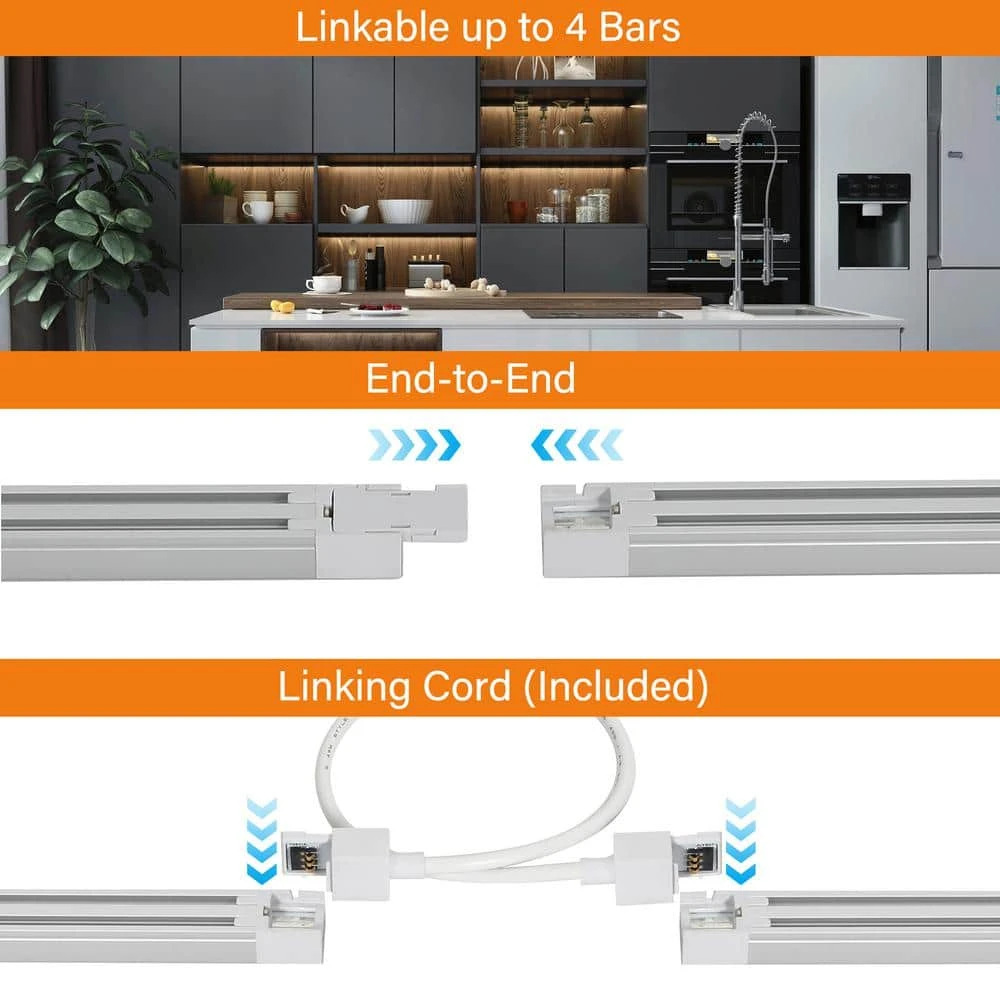 The Commercial Electric 12 in. Plug In Aluminum LED Linkable Under Cabinet Light (2 Pack) is the perfect under cabinet lighting solution for any home or office. The ultra-slim design and 5CCT adjustable white make this light a great choice to give a sleek, modern look to any space. The included linking cables and end-to-end connection make installation a breeze, giving you the flexibility you need to light any area with ease.