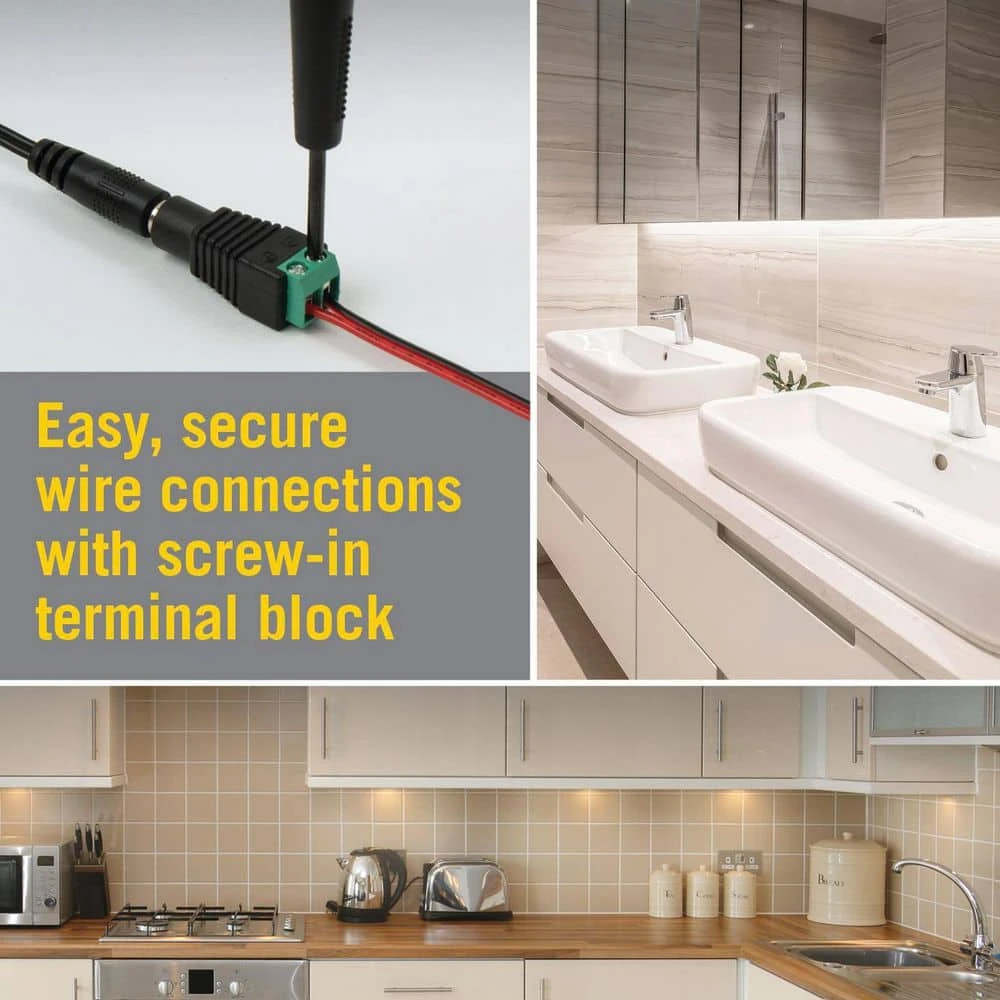 The 12-Volt Wall Mount Power Supply from Armacost Lighting features a universal DC output barrel connector tip and comes with a 2 channel terminal block connector adapter to easily pair with LED strip lights. The durable LED driver is made with premium quality components to provide safe and stable voltage output. The plug-in style transformer is ideal for 12-Volt LED Light Strips and 12-Volt LED puck light installations, but can also be used for a range of compatible applications including speakers, subwoofers, cameras, audio amplifiers, cable boxes, and routers.