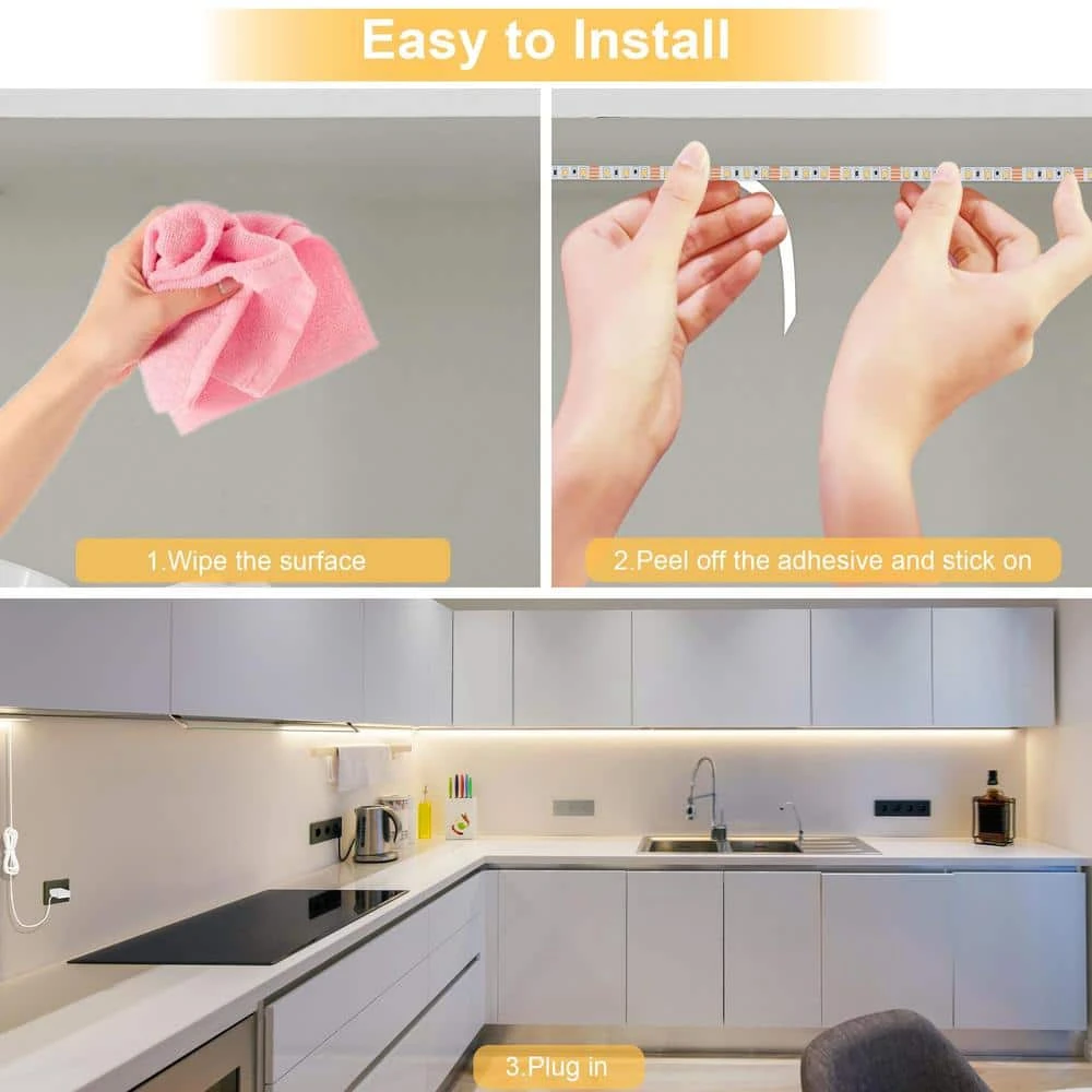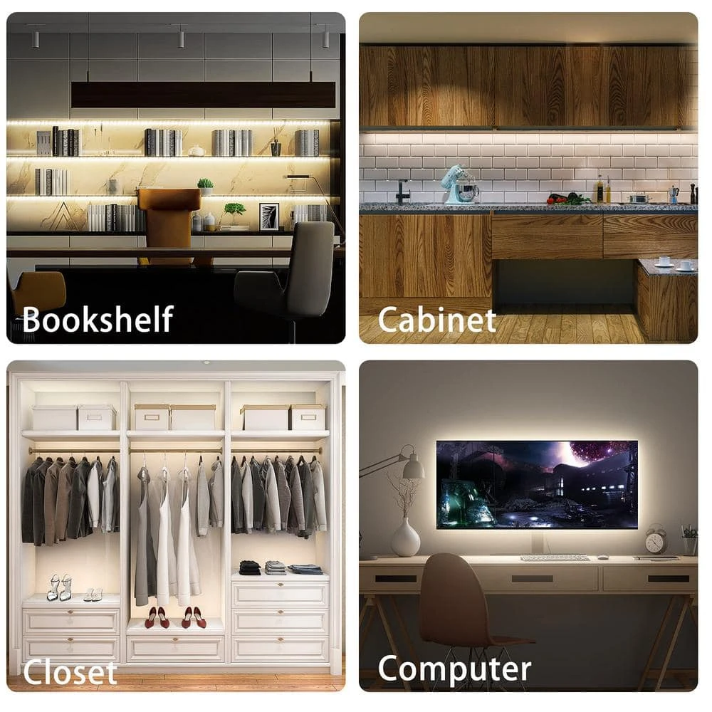 - Easy installation: it takes only a few minutes to install itself, and then you can enjoy the lighting for a long time, for use in kitchens, cabinets, closets, counters, shelves, tables, TV backs, display cases and corners