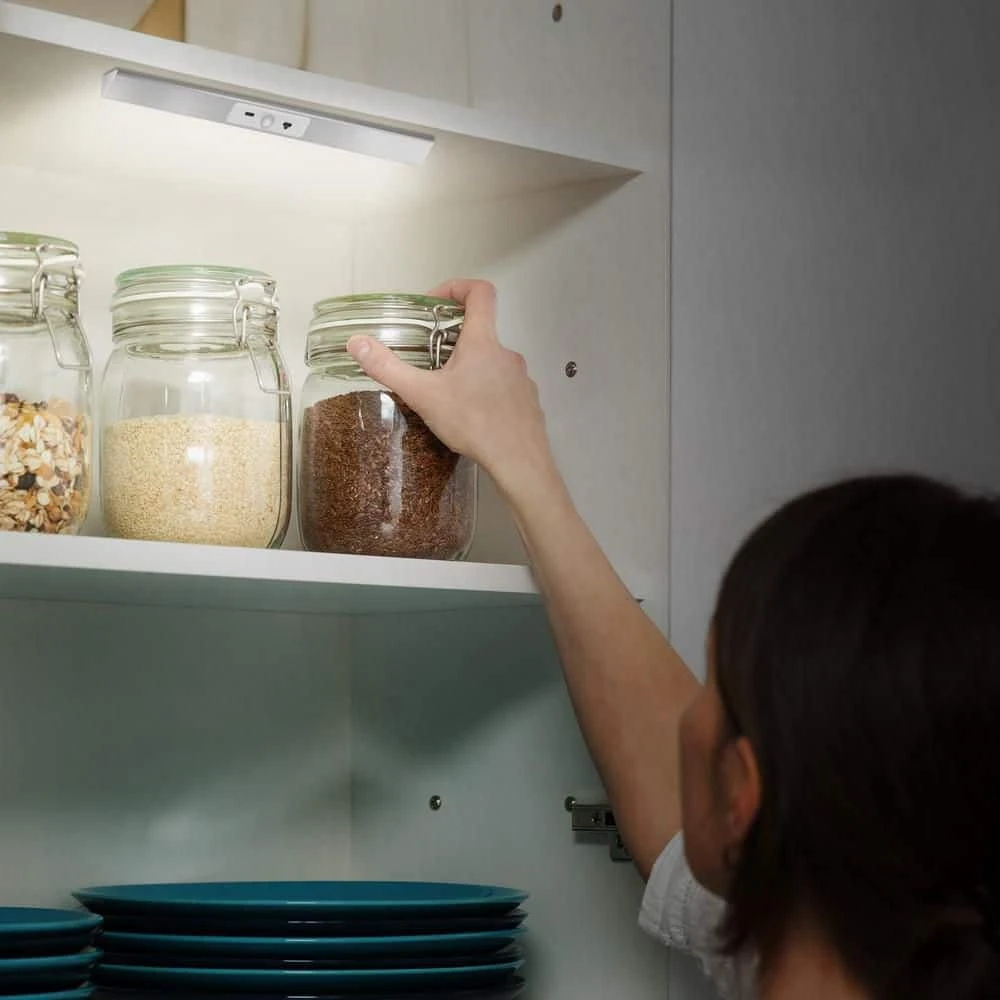 Create bright, energy-efficient closet spaces with the Feit Electric CLOSET13/840/BAT Rechargeable Battery LED Closet Light. This 13 in. fixture mounts on the wall, under shelves, or on the ceiling and turns on automatically when motion is detected. Activate sensors with the wave of a hand or opening of a door. Its 100-lumen output and 4000K Cool White light provide the perfect balance of comforting warm and energizing cool color temperatures for task lighting and wardrobe illumination. Use it in walk-in closets to brighten your shelves without putting strain on the eyes. Installation is easy: just peel off the double-sided adhesive tape and stick it to a flat surface. The light attaches to the mounting bracket magnetically. Get 3 hours of continual use. To charge, remove the light from the mounting bracket and plug it in with the included USB cable.