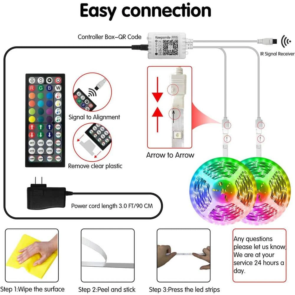 - Multiple color and DIY modes: offers 20-preset colors, 6-lighting modes (jump, fade, flash, etc.) and 2-speed settings (quick, slow), save up to 6-custom color settings using the included 44-key IR remote for personalized lighting