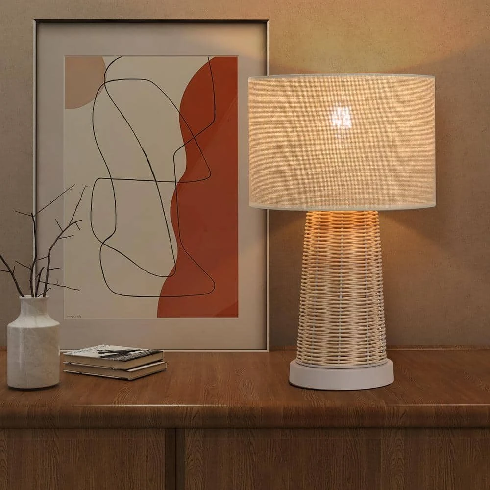 Selecting this vintage rattan table lamp gives you both a functional lighting solution and an artistic piece. It offers gentle illumination while adding a touch of natural elegance to your home. For a limited time, purchase one and receive a second lamp for free. Enhance your home decor with twice the elegance and charm.