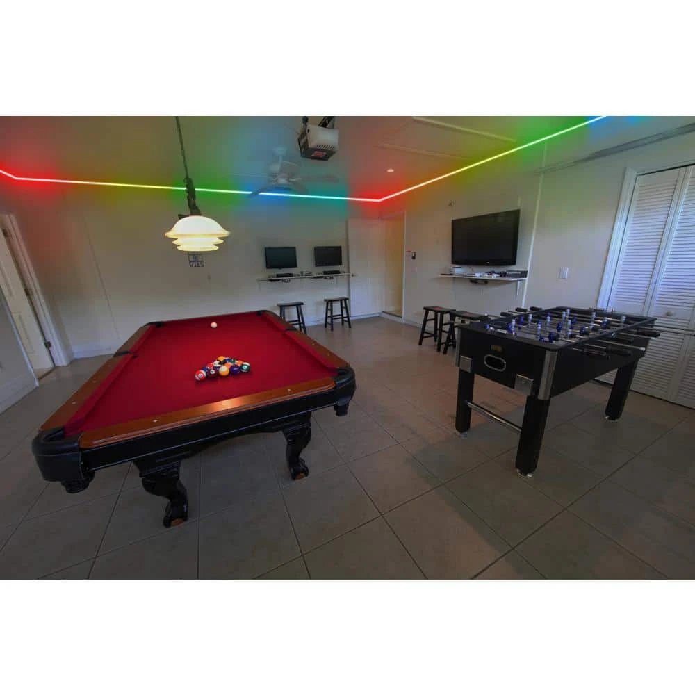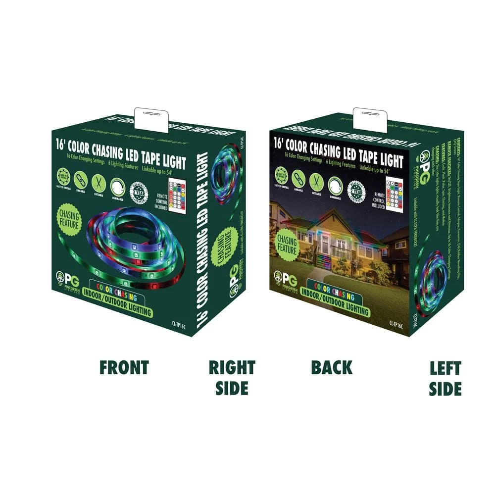 The Pinegreen Lighting 16 ft. Color Chasing LED Tape Light brings you more options for home illumination. Our tape light includes a remote control, which allows you to change the color and modes at your will to provide optimal illumination and decoration in your bedroom, kitchen, and living room, game room etc. This tape light is linkable up to 54 ft., allowing you to cover larger areas. This tape light has multiple color settings and lighting modes. It is cuttable and dimmable giving multiple options for installation and uses.