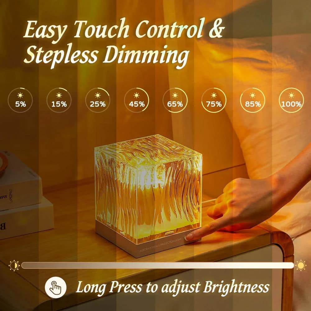 - Multi-level dimming night light function: it is not only a creative and romantic northern lights lamp but also a night light projector and a room decoration full of girly hearts, the crystal lamp northern lights cube supports stepless dimming and sensitive touch control, long-press the summary on the bottom of the cool lamp aura lamp to achieve infinite dimming, low light is used at midnight without fumbling for the switch, medium light is for normal use or decoration, high light is bright enough for bedside mood lighting