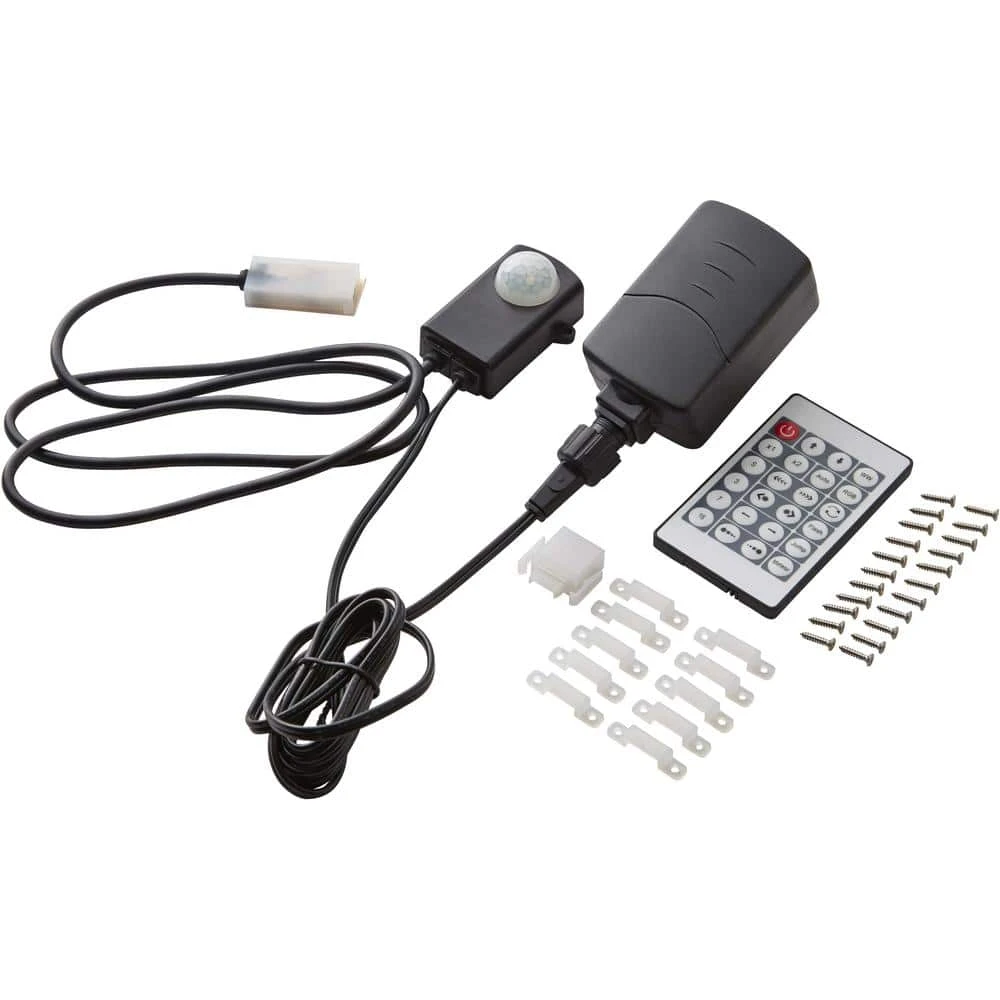 This kit includes an 18 ft. flexible LED tape light strip, power cord, mounting hardware, end cap and remote. Use the strip to add fresh color to any indoor or outdoor space. By using the remote control, you can get a full range of 16 different colors including a warm white setting. You can personalize your space by using many different light functions; flash, jump, trail, race and more. You can connect up to 2 linkable LED Strip kits (SKU # 1001548528) to personalize your space in multiples of 36 ft. as needed. The LED’s are extremely energy efficient, with the full 18 ft. using a mere 24-Watt. Great for kitchens, work spaces, showrooms and more.