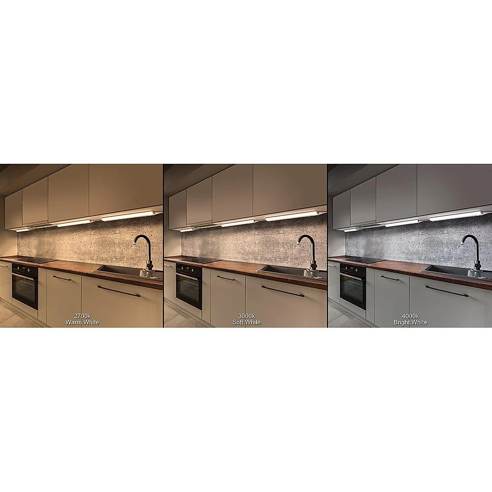 Commercial Electric’s 18 in. LED Color Changing CCTs Under Cabinet Light Linkable is designed to replace over-heated under cabinet puck lights and outdated fluorescent, incandescent or xenon fixtures with premium LED technology. You choose from (3) color temperatures 2700K Warm White, 3000K Soft White or 5000K Daylight with a flip of a switch directly on the fixture. It is linkable up to 25 units and is a maintenance free fixture with no bulbs to replace. Perfect for food preparation, accent lighting or walk safely around at night. Great for under desk-hutch, work stations, cabinet unit, shelving laundry rooms, workshops, storage rooms or closets.