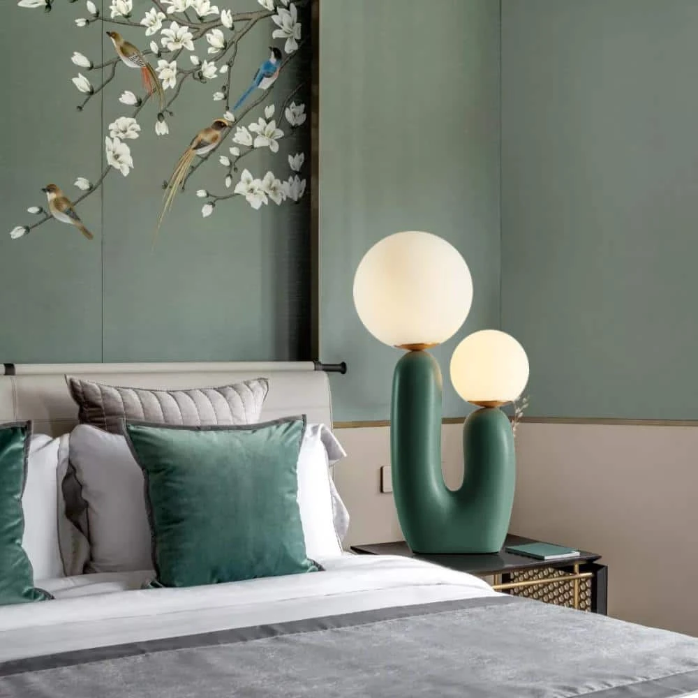 Milky white frosted glass bulb lamp shade, fashionable and exquisite, resin lamp body, fashionable shape, strong and stable. These simple and elegant table lamps are really perfect to decorate anywhere of your house. A ideal table lamp for living room, bedroom, study room, kids room, etc. Add a bit of warm and comfortable atmosphere to your bedroom or living room.