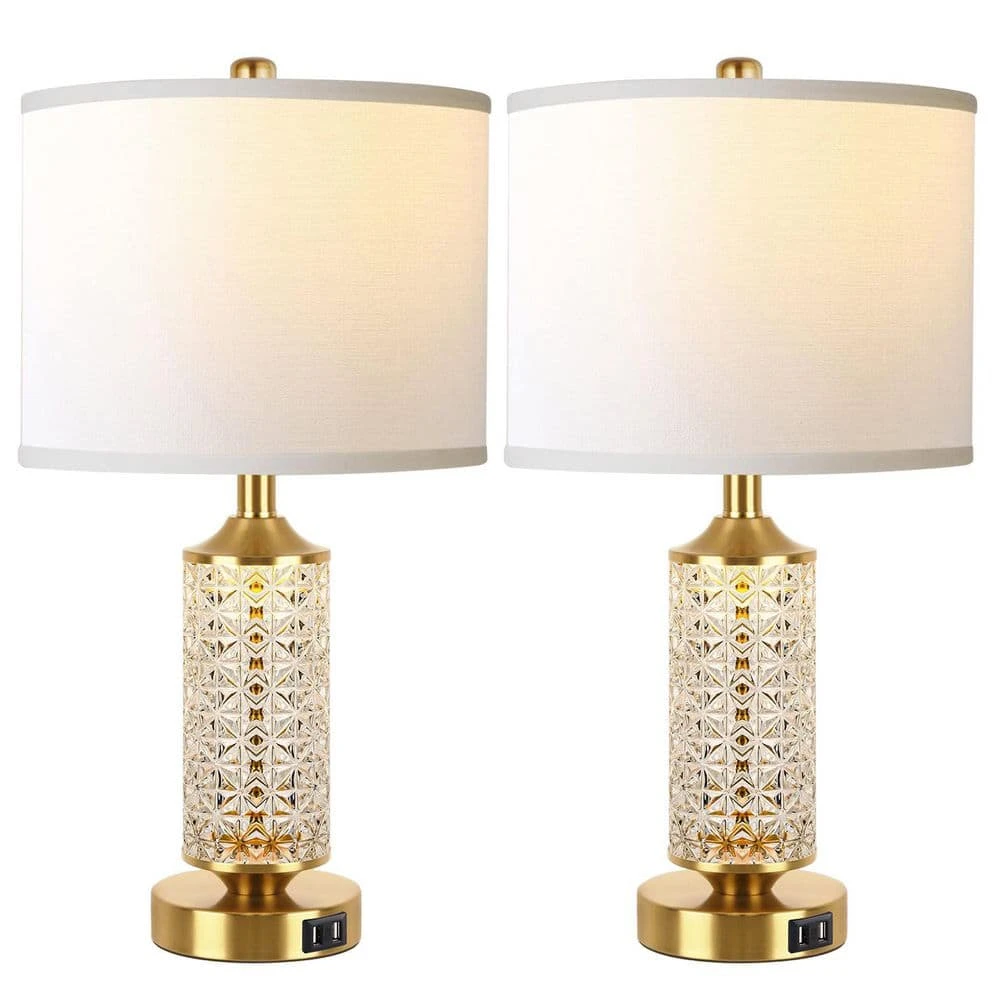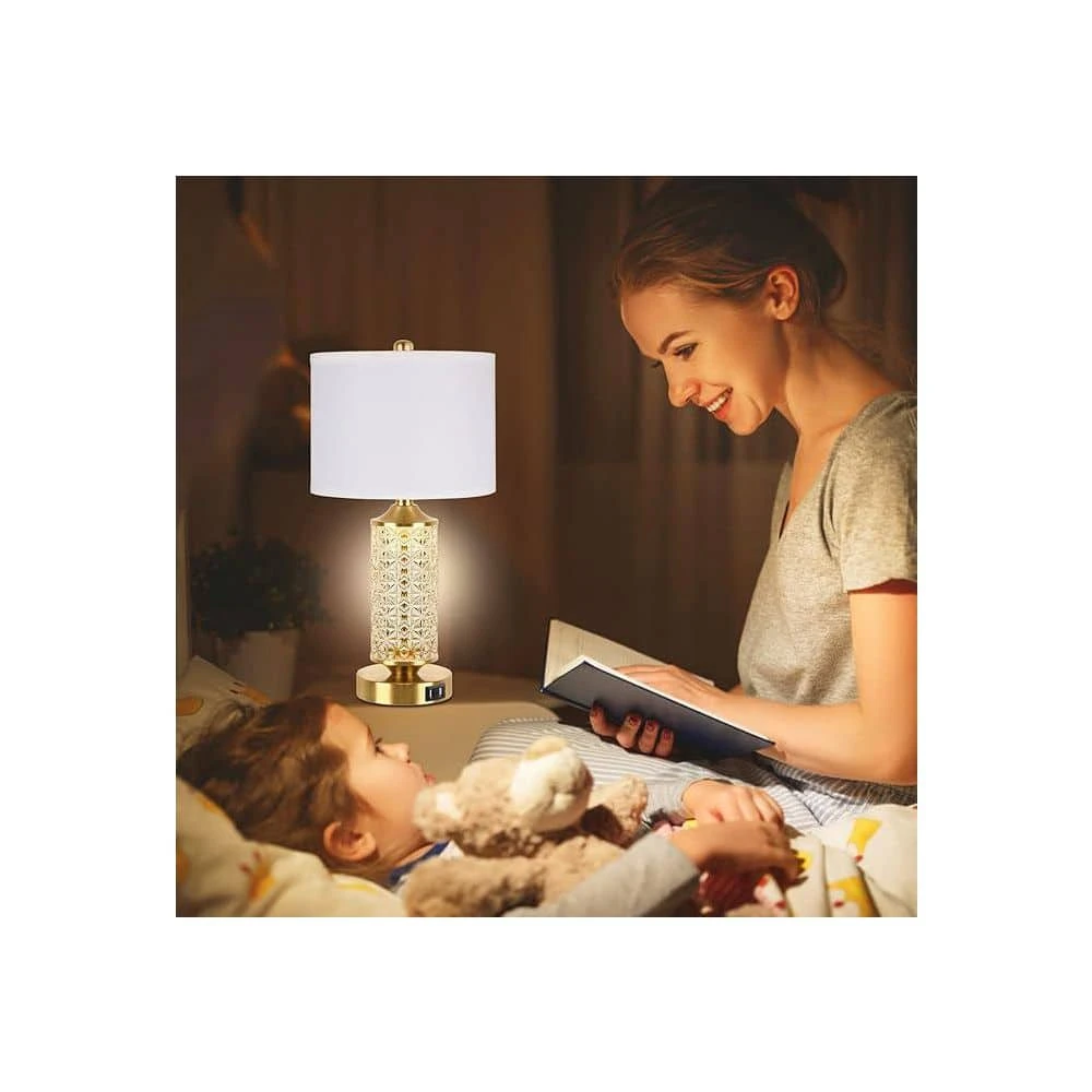 - Top table lamp and bottom night lamp:this gold table lamp set of 2 offers a variety of lighting options you will get regular table lamps and night lights, controlled on/off by a 4-way rotary switch: table lamp on, night light on, both on, both off, glass table lamp with usb providing you with enough lighting options to meet your different needs walking in the dark, accompany you before bed