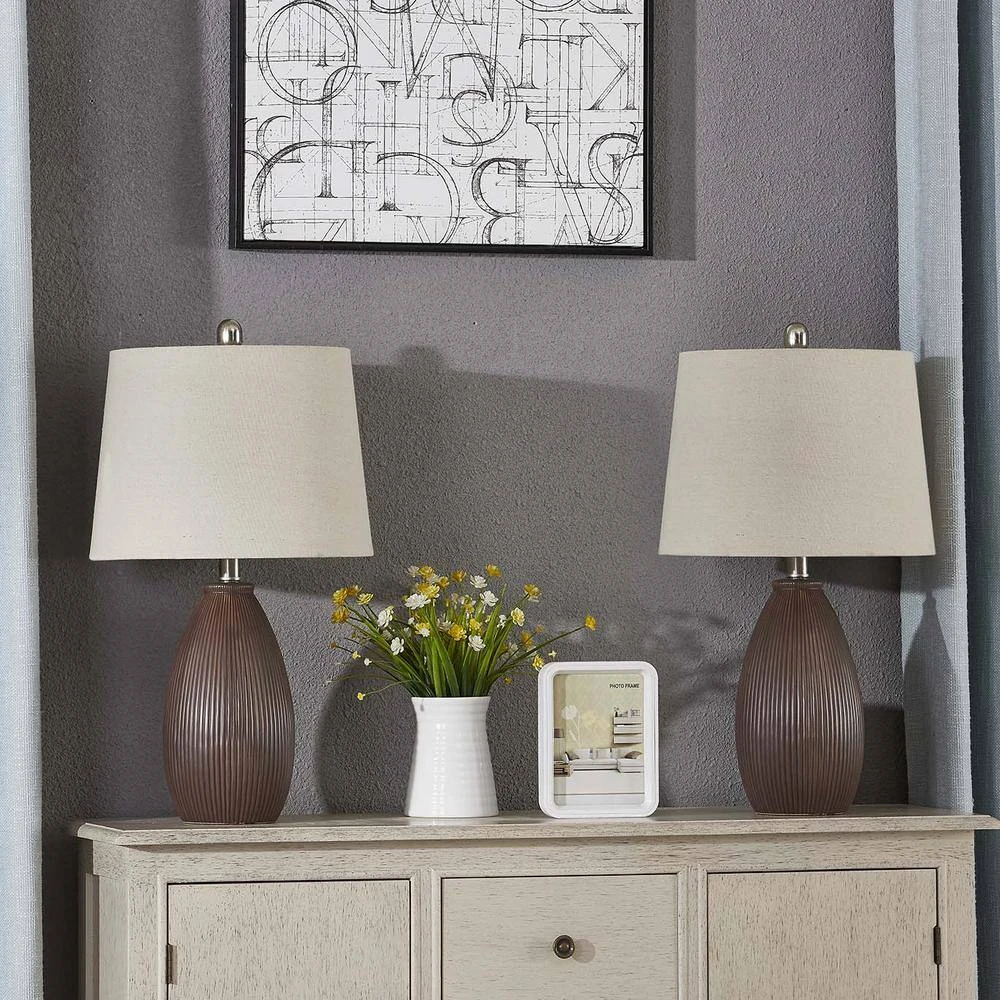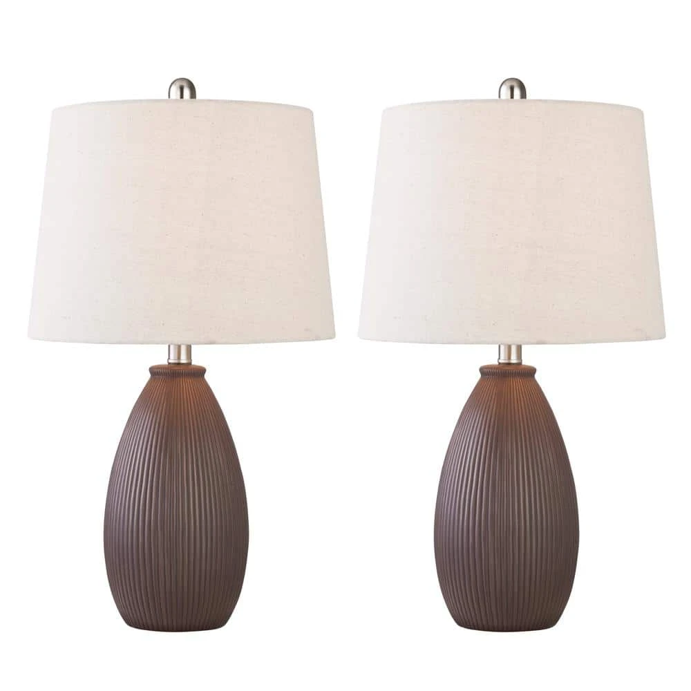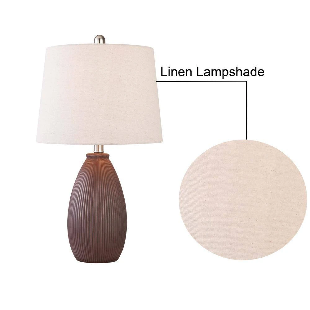 This table lamp combines modern minimalist, rustic and artistic elements with a brown finish ceramic body with some characteristic patterns, perfect for modern farmhouses and home decor. The oatmeal-colored linen shade is chosen for its light transmission and is paired with a 3-way switch for simplicity and speed, better meeting basic daily lighting needs and the best choice for a modern table lamp. Maxax is a global brand with ETl certified products, creating superior lighting fixtures with safe and stable quality. this product is sold in a 2-pack.