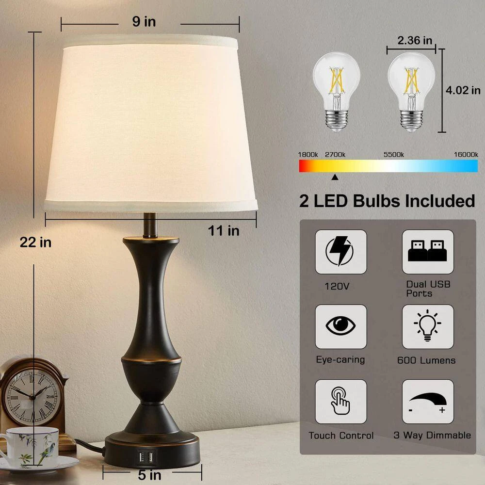- Bedroom lamps designed with an upgraded usb-c charging port and a usb-a port on touch lamp base