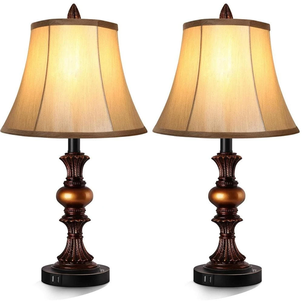 - Traditional table lamp: designed in a vintage style, the bronze finish of the bedside lamp is perfectly paired with the light gold bell shape lampshade to create a timeless look, the traditional design is modernized with a rustic feel, making this the perfect finishing touch to any style of decor, perfect for the entryway, living room, or office area, use both lamps in one room, or divide them up for use in several rooms in your home