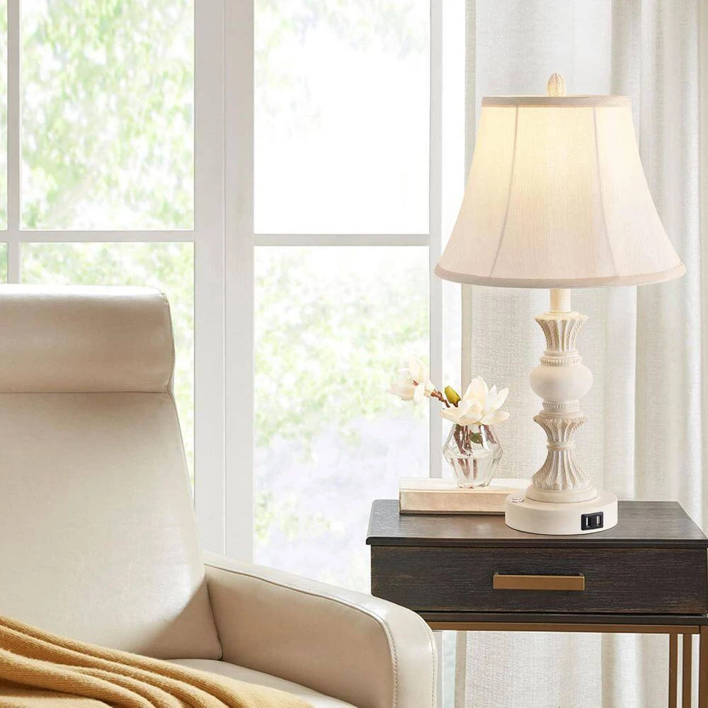 - Rustic farmhouse table lamp: designed in a vintage style, the washed white finish of the bedside lamp is perfectly paired with the white bell shape lampshade to create a timeless look, the elegant design is modernized with a rustic feel, making this the perfect finishing touch to any style of decor, perfect for the entryway, living room, or office area, use both lamps in 1 room, or divide them up for use in several rooms in your home
