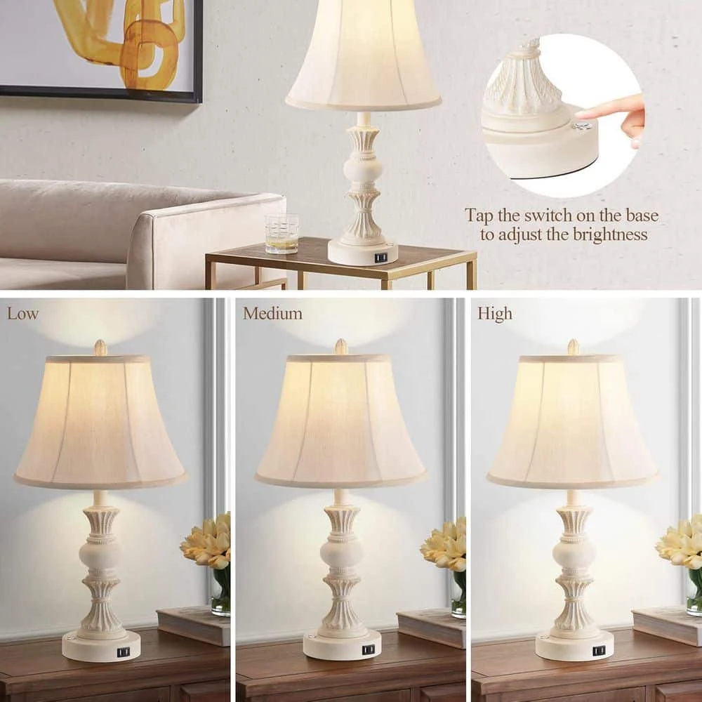 - Dual USB charging ports: each table lamp comes with 2 USB charging ports, which conveniently located on the base of the lamp, the USB ports are available for use whether the lamp is on or off as long as the table lamp is plugged in, you can charge your mobile phones, tablets, kindle readers, and other electronic devices when you’re at work or sleep, add more convenience to your life