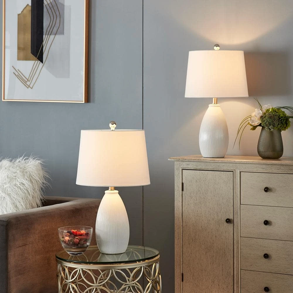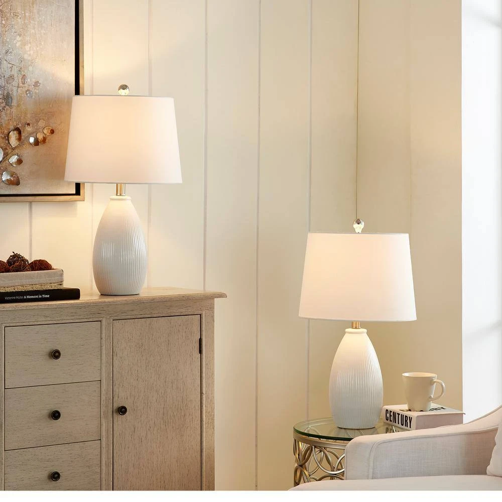 - Ceramic Structure Design: The bedside table lamp set of 2 is constructed of metal & ceramic material with (white) finish lamp’s body and (white) detachable assembled drum lampshade that are perfectly combined with the warm tone of the lamp’s illuminated, creating a comfortable environment to read, to work, to rest,without hurting your eyes