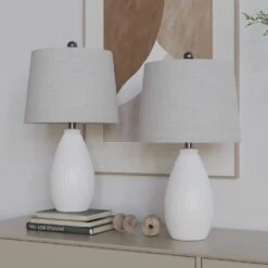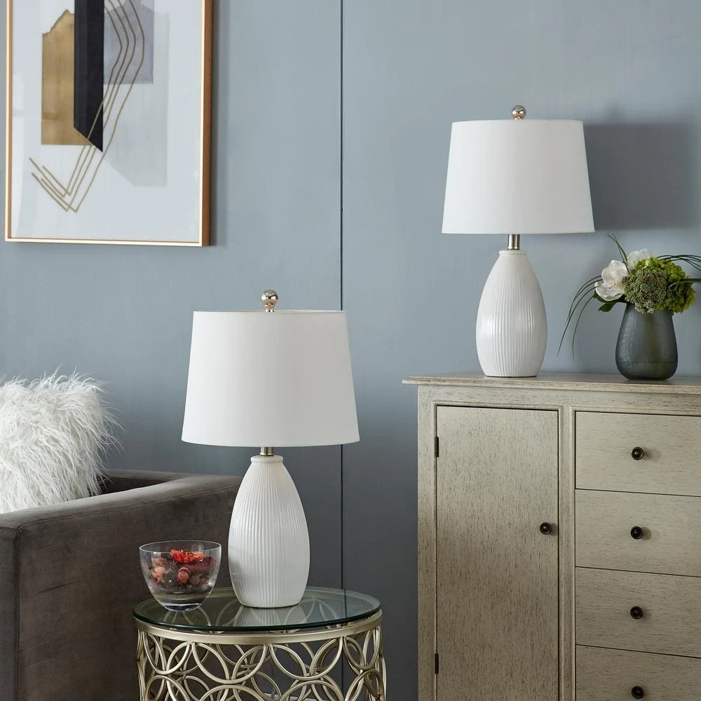 Combining modern simplicity, rusticity and artistic elements, this table lamp features a teardrop-shaped design for the lamp body and a characteristic pattern on the white body, which is perfect for modern home decoration. Selected white linen lampshade, strong light transmission, soft light out of the eye does not hurt, with a three-way switch, simple and fast, can better meet the basic daily lighting needs, but also the best choice for modern table lamps. Maxax is a global brand with ETL certified products, creating superior lighting fixtures with safe and stable quality, this product is sold as a 2-piece set.