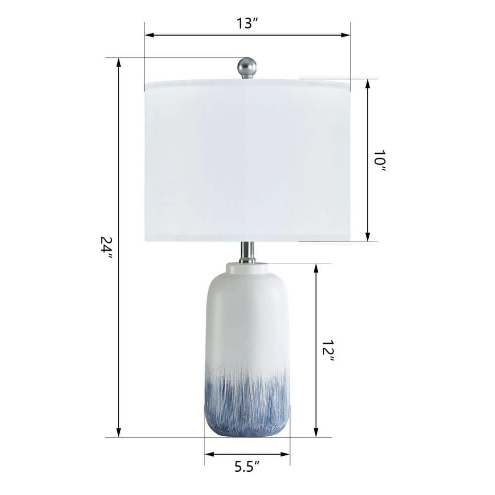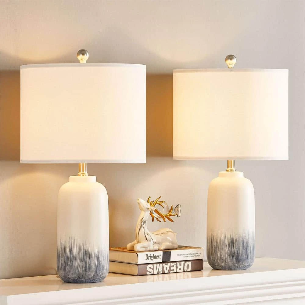 This set of lamps features ceramic craftsmanship for the base, paired with drum-shaped lampshades made of white linen. The versatile design supports dimming functionality but requires compatible dimmable bulbs (bulbs not included). ETL certified to ensure safe use.