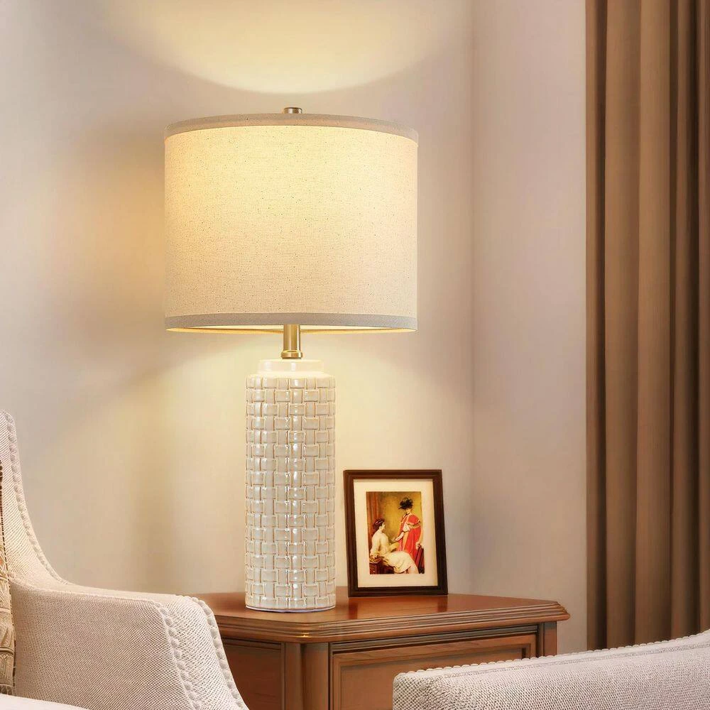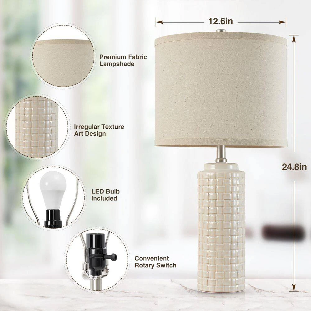 - Set living room lamps easy to assemble, measuring 24.8 in. height with a 12-in. wide shade, high-end ceramic lamp body will not fade as the time goes, durable and convenient to maintain, this bedroom lamps are easy to install without tools, following the instruction to assemble this lamp shade