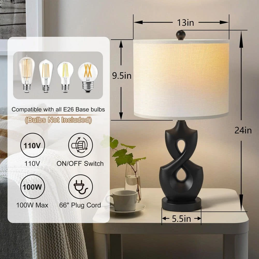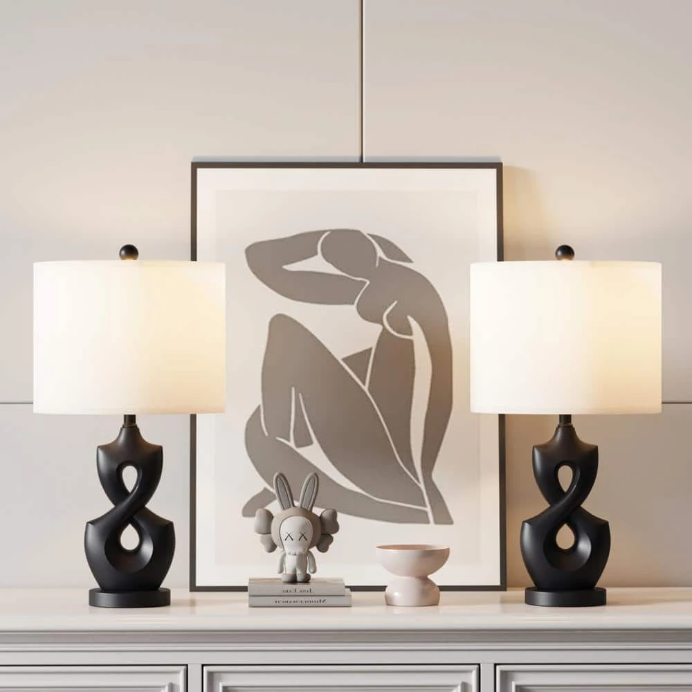 Simple and stylish, high-end and unique are the design concepts of this table lamp. The graceful and smooth curve design the fine and smooth matte black finish and the high-end texture show a novel and fashionable modern geometric design style. The exquisite resin base is stable and thick, practical and beautiful, bringing elegant artistic decoration to your home. It is the perfect choice for modern table lamps.