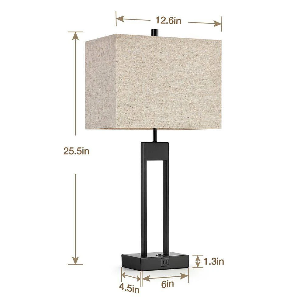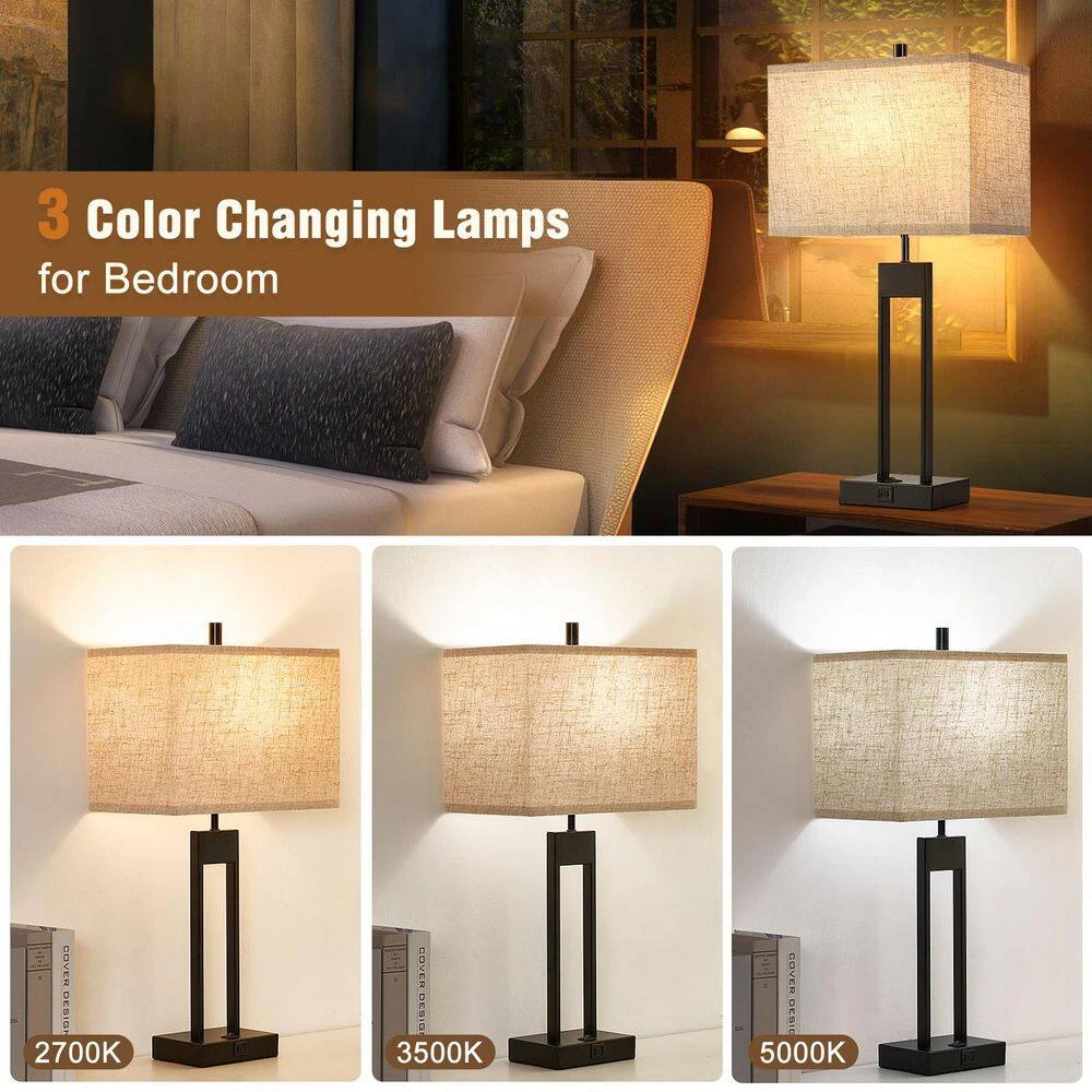 Elevate your living space with these modern table lamps featuring a sleek black finish and rectangular fabric shades. Equipped with USB-A and USB-C charging ports, these versatile lamps offer 3 adjustable color temperatures to create the perfect ambiance. Crafted with durable metal and including 2-energy-efficient LED bulbs, these nightstand lamps seamlessly blend form and function to enhance any bedroom, living room, or office. It is suitable for any place, can be used as nightstand lamp, Living room table lamps ide table lamp, console table lamp, end table lamp, dining table lamp, etc. They also make ideal gifts for birthdays, housewarmings, or weddings.