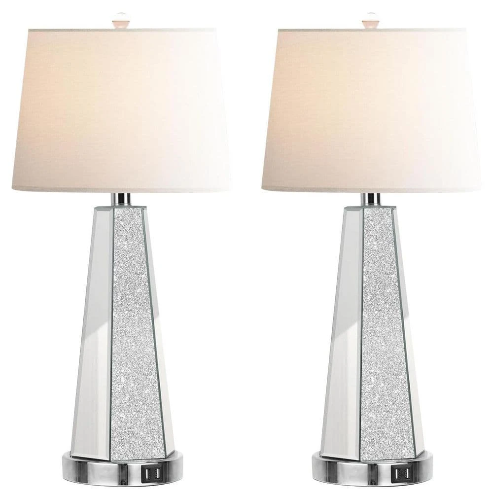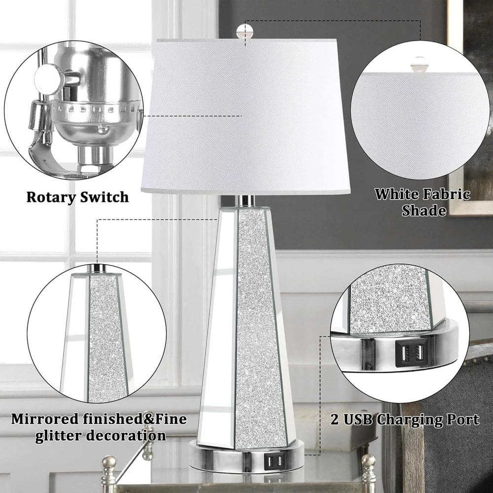 - Built-in 2 USB ports:the two glamorous lamp features two conveniently located USB ports right on its basethese ports are compatible with most electronic devicesno more searching for an extra outlet or USB adapter-simply plug in your device directly into the lamp and enjoy easy access to charging