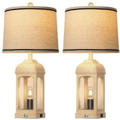 - Lamps with usb a+c ports: this rustic table lamp is equipped with dual 5v/2a usb ports on the lamp base you can charge 2 electronics simultaneously, such as mobile phones, pads, kindles, humidifiers and other electronic devices the charging port works whether the nightstand lamp is on or off type-c ports can match more types of electronic products for your multiple needs you can easily charge your electronic devices whether you are sleeping or working