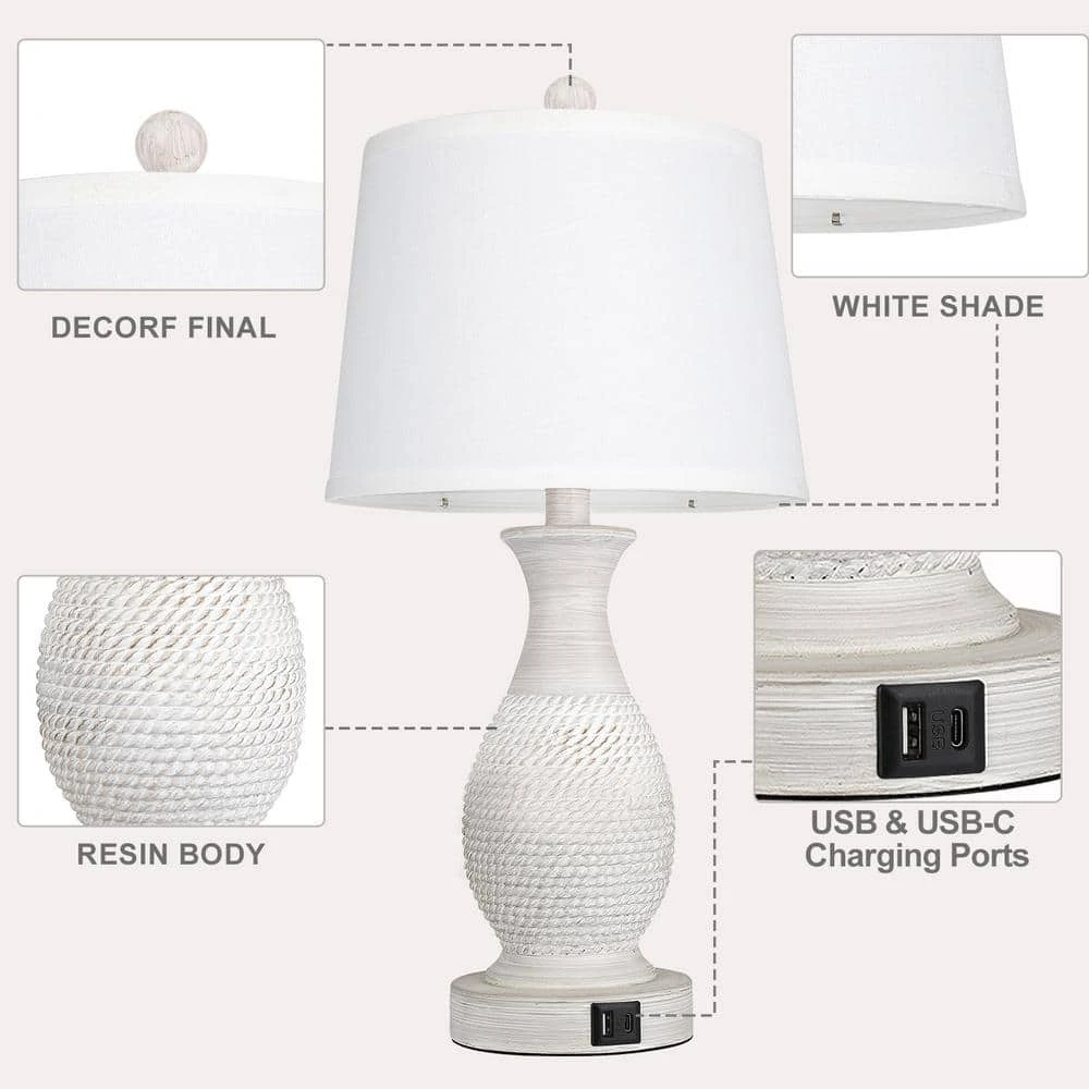 Modern minimalist style, this table lamp creates a warm, cozy, and comfortable atmosphere in your room or office, perfectly fits for bedroom, living room, study room, office, etc. Inspired by classic flower vase and farmhouse style, this set of 2 table lamps features white-washed finish bases and tapered shades. The lamps are ideal for use in traditional rooms, farmhouse decor, or coastal decorating.