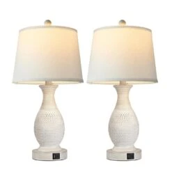 - Retro-style lamps set of 2: this pair of table lamps of crafted from polyresin, its base showcases a curved silhouette, a distressed gray finish, and a raised rope motif along the bottom for a touch of texture, this large table lamp is topped with an elegant drum shade in white fabric, a decorative finial eventually tops off the entire look, trust me you will fall in love with it at a glance