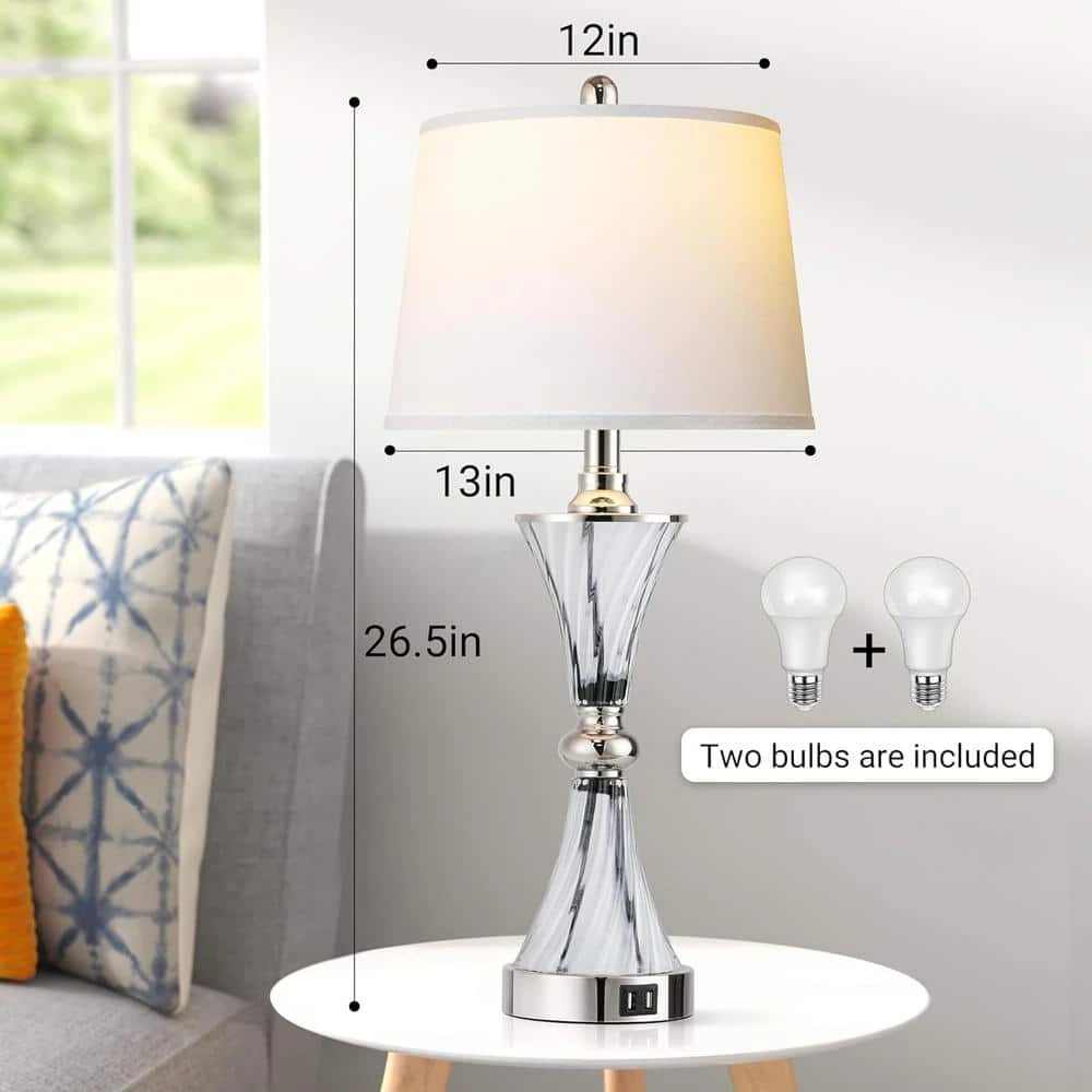 - Bulb base: e26 ,product dimensions:12 in. D x 12 in. W x 26 in. H, item weight: 9.6 lbs. lamp type: table lamp, desk lamp, shade color: white, shade material: fabric, switch type: touch, style: minimalist, modern, traditional, transitional, color: silver, special feature: 3-way,dimmable,rechargeable,touch control, light source type: led