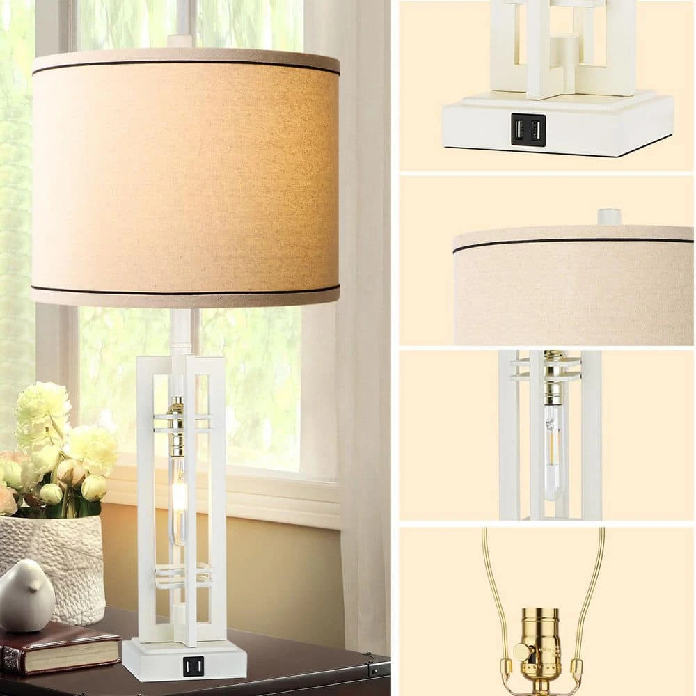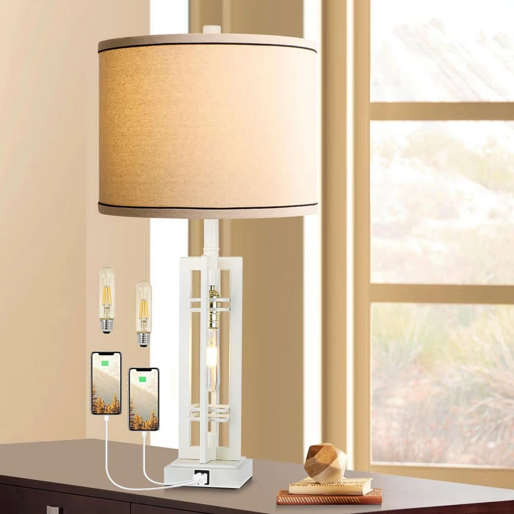 - 4-way rotary switch for different occasions: the two light sources can be lit through a four-way switch on the rustic table lamp, allowing for either both lights, the main light or the night light to be in use, this table lamp with USB port is perfect for a bedside table in a living or study area, the white finish, natural shade, and Edison nightlight bulb work seamlessly together to create a beautiful lamp that boasts both industrial and rustic style