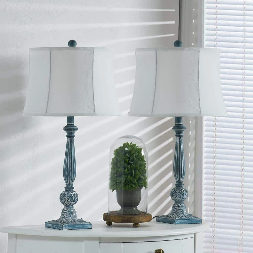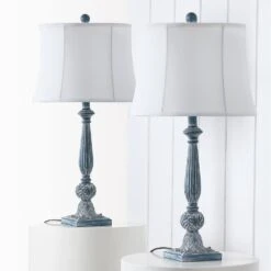 Timeless and simple design Gorgeous and elegant, this 22.25-inch table lamp is a delicate resin work of art with a classically artistic lamp post with a white linen palace shade perfect for modern home decor. Unique to this table lamp design is the white vertical patterned body that adds rich texture to your space while retaining its minimalist style. The style is neutral and will match essentially any decor. Also equipped with USB and 3-way switch to better meet your daily home lighting needs, it is UL certified for safe and reliable quality.