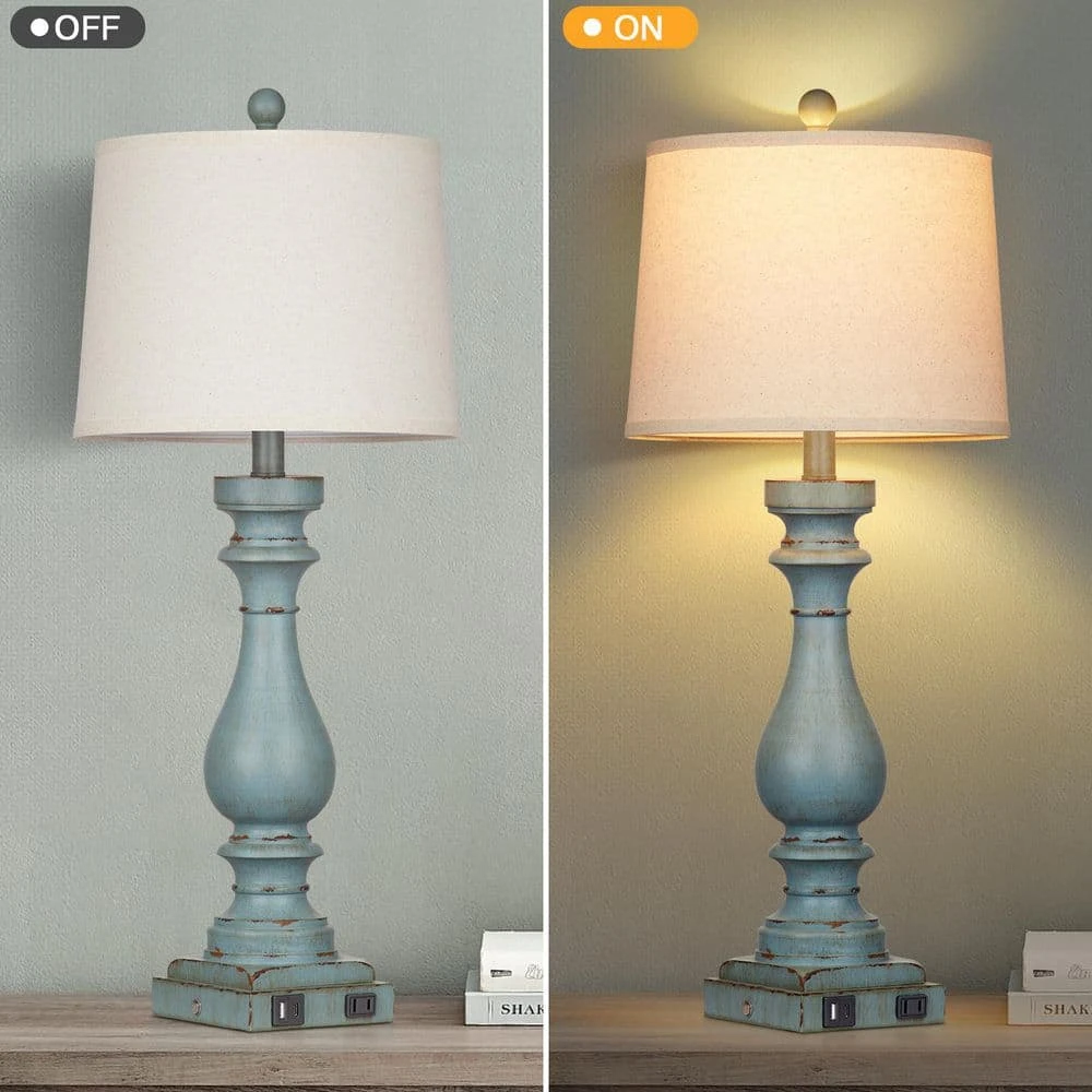 The table lamp is designed with drop-shaped lamp body, knock-down white lampshade. Its design idea is from traditional architecture. The vintage elements improve more historical sense. Also, it produced with more new technologies. For example, its lamp body adopts resin, the lampshade used linen. They’re both degradable. Especially, the lamp base integrated with touch dimming switch, USB port and AC socket. And they’re not affected by each other. No matter you turn ON/OFF the lamp, the USB port and AC socket is always maintaining power supply. Even it can replace your smart devices adapter and you just need to use the USB cable to charge. It’s convenient for daily use. Additionally, you can use it as a special part of your living room or bedroom, that’s better to enhanced your interior decoration atmosphere.