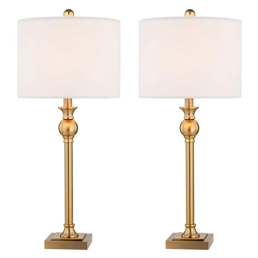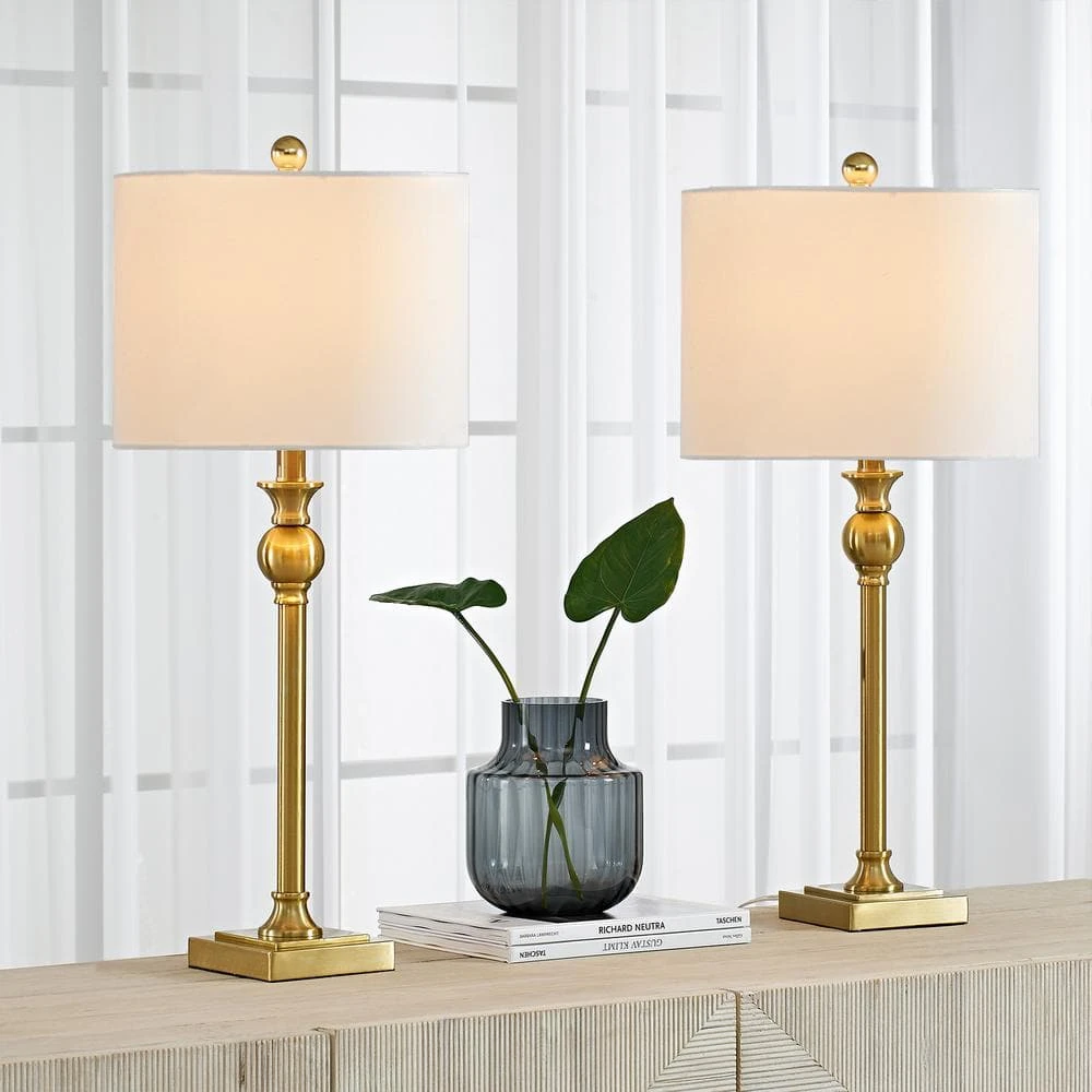 A more classic style modern table lamp with an overall plated brass design, square base and white fabric drum shade perfectly blends the charm and comes with a USB socket to give your home a modern and contemporary upgrade. It can complement a variety of interior design schemes such as urban, modern, minimalist, traditional and industrial styles. Add comfort and elegance to your office, living room or bedroom. The product is UL certified for safe and stable quality.