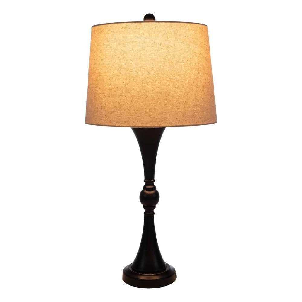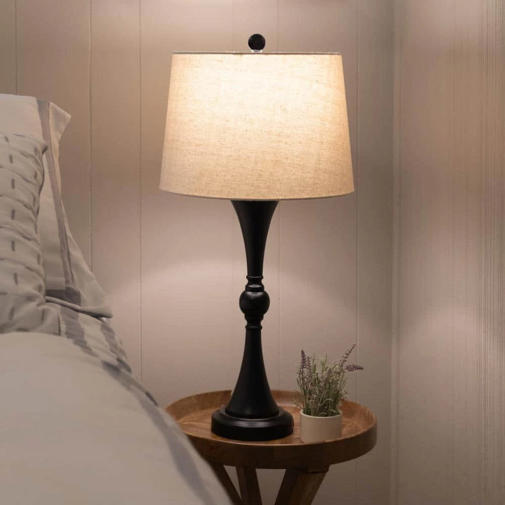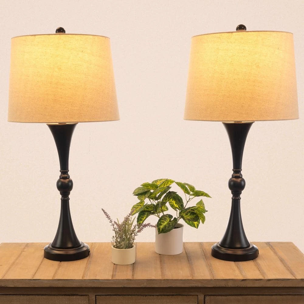 - LED lamp set comes with 2 matching table lamps, featuring a black finish and neutral linen fabric shades that is sure to complement existing decor styles