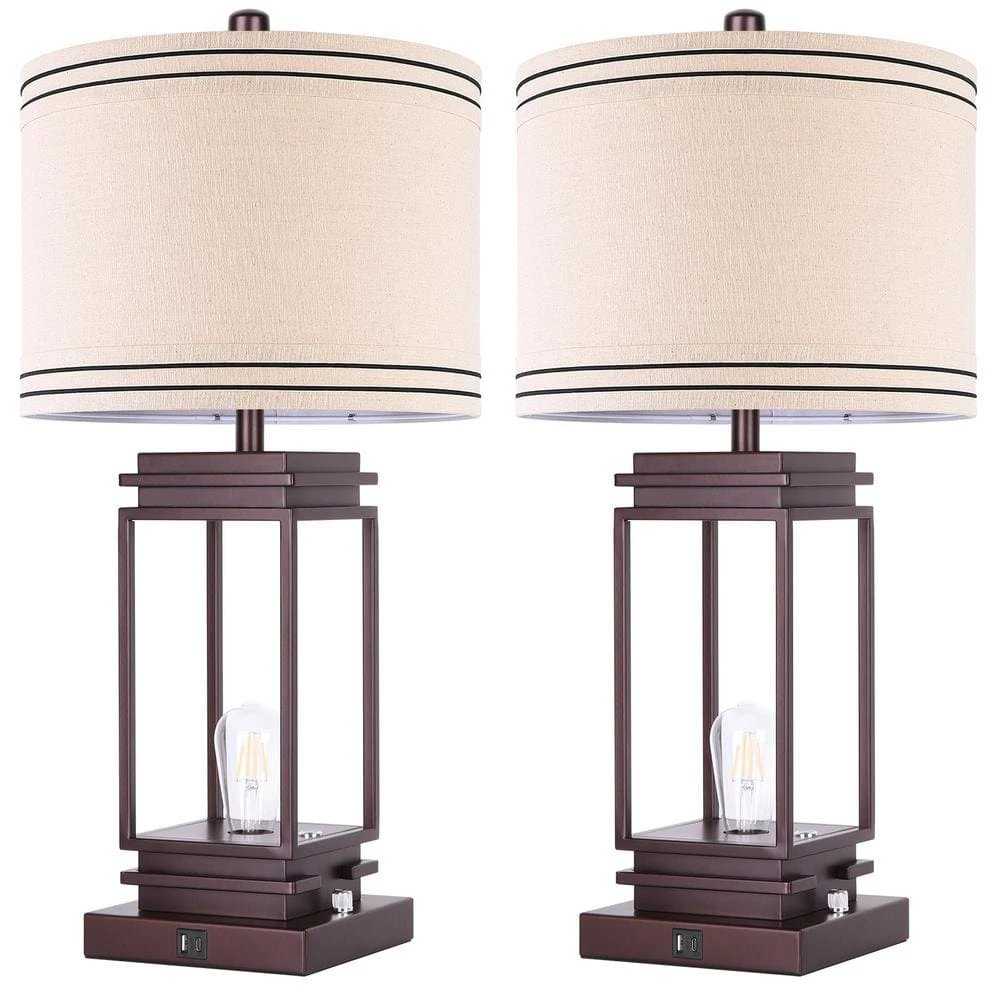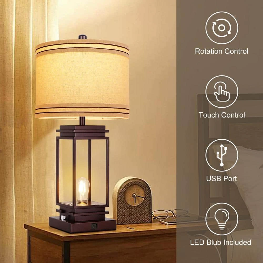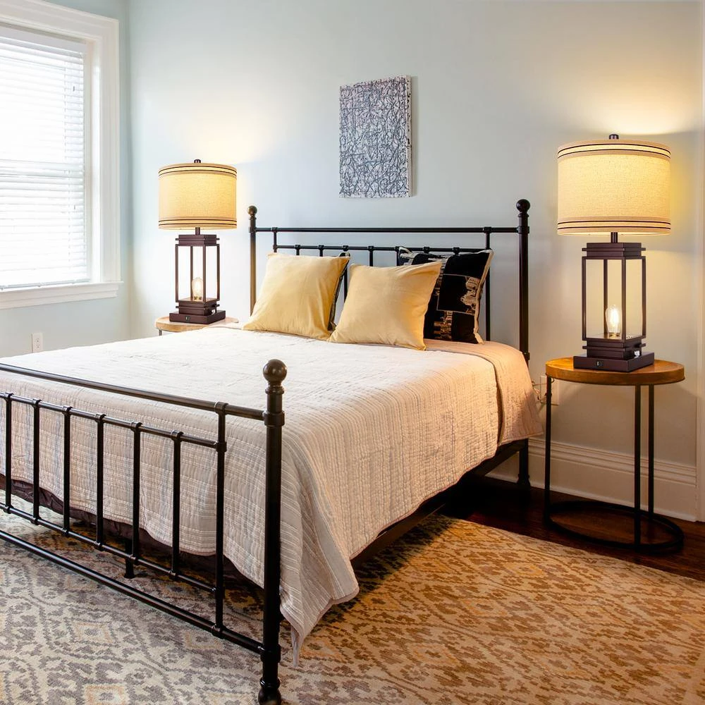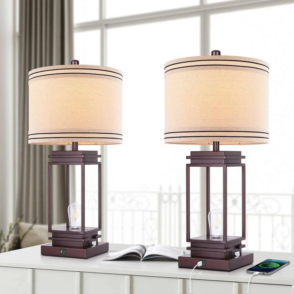 The 28 in. table lamp set with a vintage look and simple design, perfect decor for living room, bedroom, entryway, or office. This table lamp with linen lamp shape brings a warm and romantic atmosphere to living rooms, bedrooms, etc. The lamp body is made of metal, which has more stable, ensuring the lamp’s longevity and safety. Its country-style design and delicate craftsmanship complete the home decoration. Each nightstand lamp is equipped with USB charging ports, USB-C charging ports, outlets which can provide charging for your phone or other devices, making it easy for you to use smart devices anytime and anywhere. This table lamp comes with 2-light sources, you can rotating the summary to turn on the top light or press the summary to turn on the bottom light, or you can turn on both or just 1 to meet your different lighting needs. The LED night light and main light provide 3-adjustable lighting modes, allowing you to choose your lighting to suit your mood. Whether you’re unwinding after a long day or need focused illumination for work or reading.