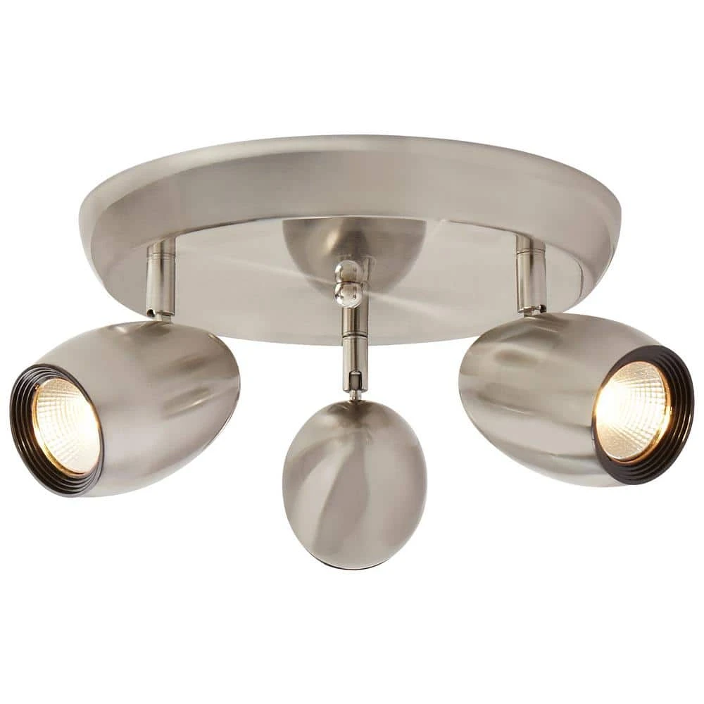 Hampton Bay LED 3-Light Spotlight with Directional Head, both Brushed Nickel and Bronze are available. LED Heads pivot and rotate to direct light where it is needed most. Dimmable, energy saving using 17-Watt, while delivering performance equivalent (3) 35-Watt traditional halogen lights. LED integrated module, maintenance free, no need to replace bulb, saving time and cost. This well-rounded spotlight is sure to satisfy your indoor lighting needs. Good choice for decorative location like living room, kitchen, bedroom and other rooms that high-end LED fixture required.