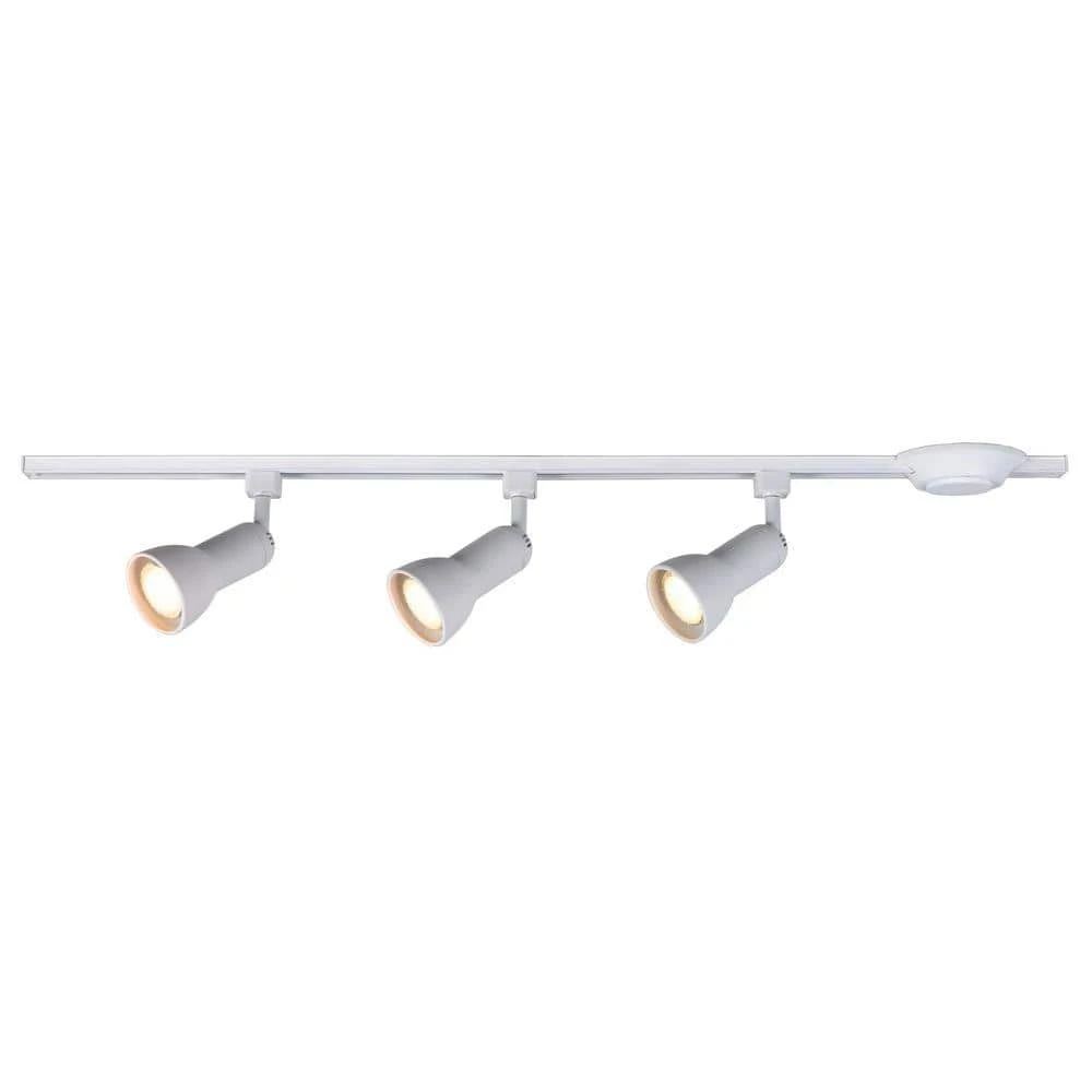 This Commercial Electric Track Lighting kit comes with everything you need to get up and running. It provides an abundance of light and sophistication to your interior space. It features multi-directional lamp heads to provide light to difficult places where light does not reach. You can add additional heads connect multiple kits using only 1 power supply or create design patterns with additional track lighting components (sold separately).