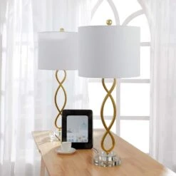 Sold in a 2-pack, this modern table lamp from Maxax Home features a spiral crystal body base design with a hollowed out feature design in the middle of the lamp body, blending modern simplicity and niche art, with a gold finish perfect for modern home decor. Selected white linen lampshade, strong light transmission and soft light does not stimulate, while with the three-way switch, convenient and fast, can better meet the basic needs of daily lighting.Maxax is a global brand that creates excellent lighting fixtures, and the products are UL certified for safe and stable quality.