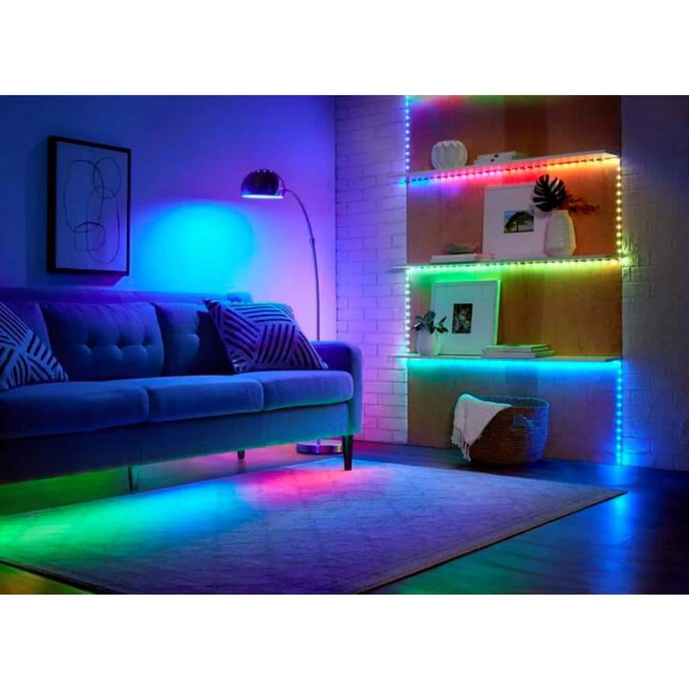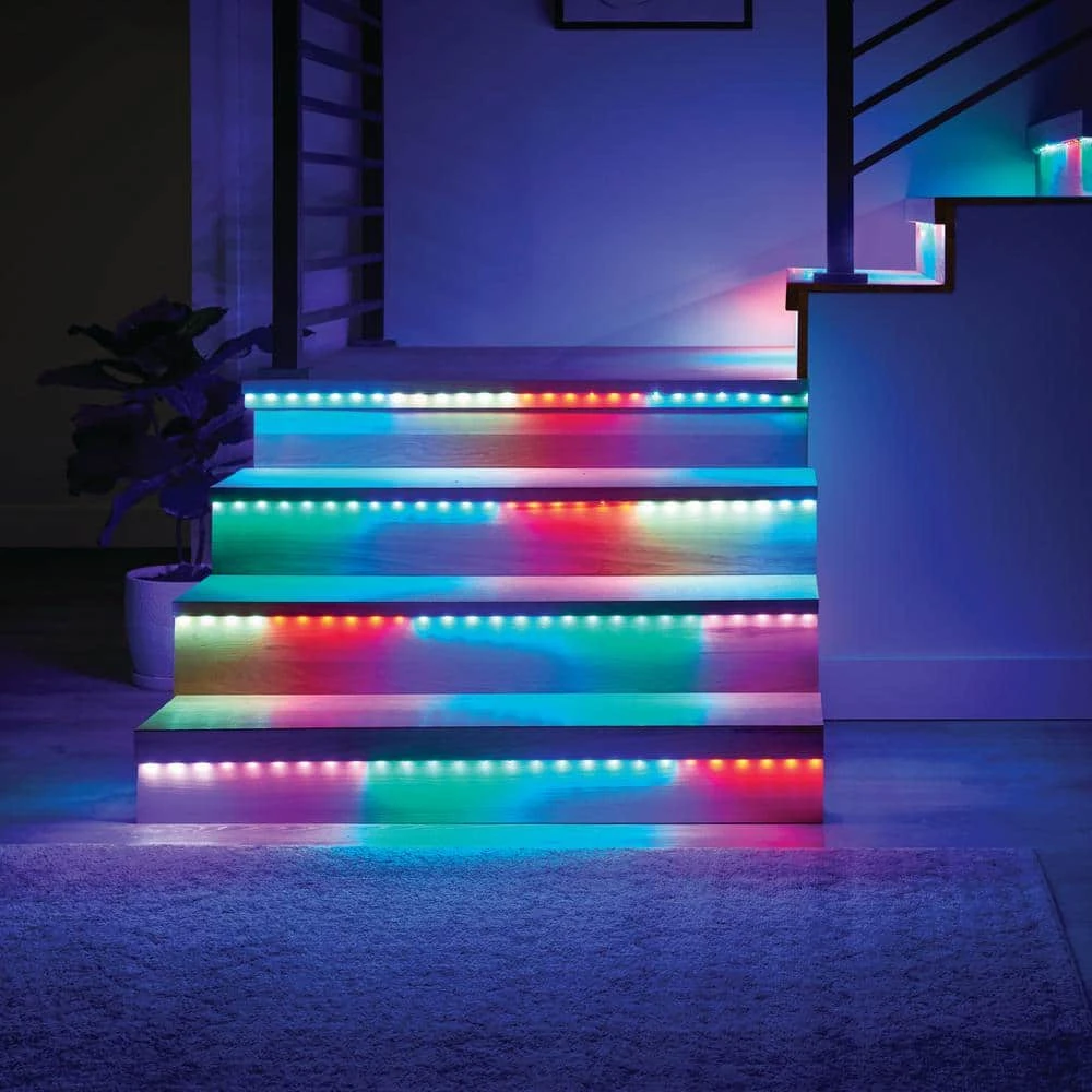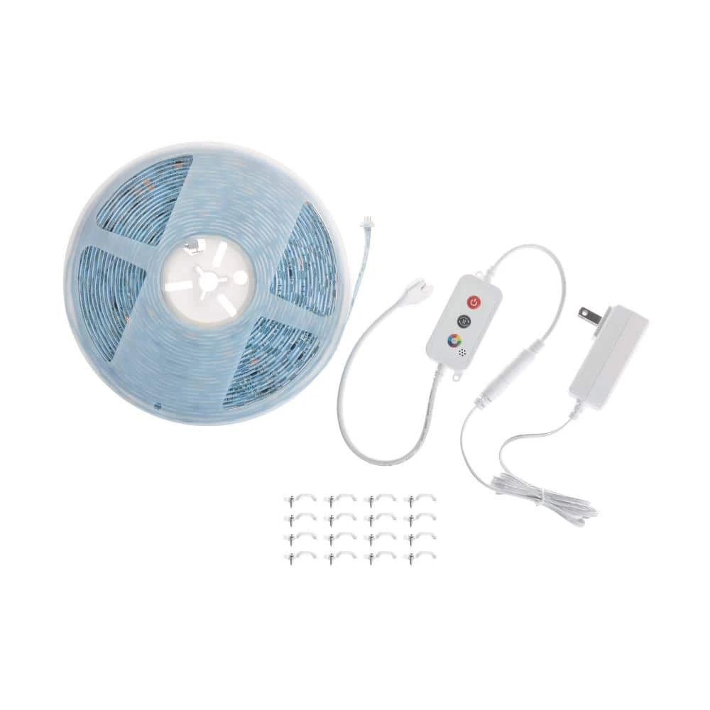 This Plug-In 32 ft. LED RGBWIC Tunable White Tape Light with Hubspace is the perfect lighting solution for any indoor or outdoor application. This smart tape light pairs with Home Depot’s Hubspace App to control. Select from a wide spectrum of colors, including a tunable White. Includes dozens of pre-programmed light settings and modes. Also pairs to Amazon Alexa and Google Assistant. Also includes Remote Control for easy use.