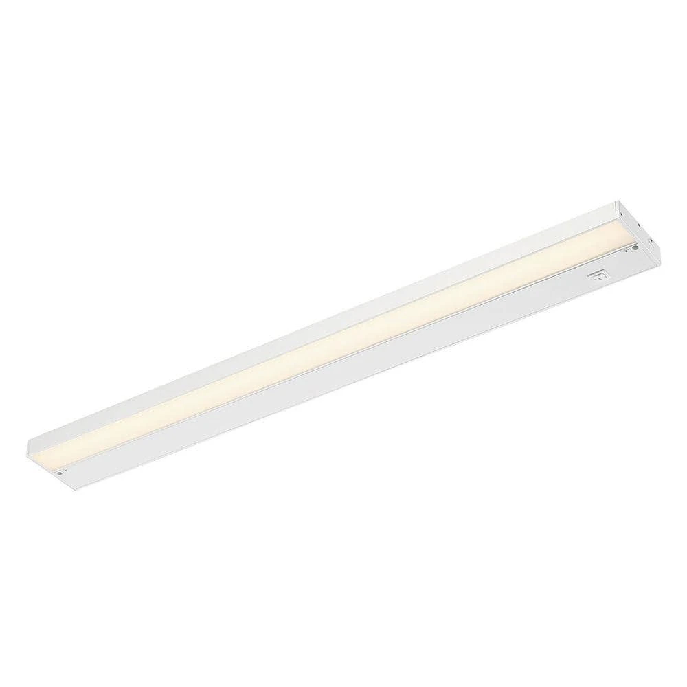 This SAVOY HOUSE Essentials LED under cabinet light is an ideal way to bring more convenient illumination to any space. The surface-mounted light gives off 940 Lumens at a 3000K color temperature with a 90 Plus CRI and is dimmable with a triac dimmer. This cabinet light can be hardwired or plugged in to a wall outlet (power cord sold separately). White finish. 120-Volt AC input. Rated life is 50,000-hours. Wet area rated. 32 in. L, 3.6 in. W, 1 in. H.