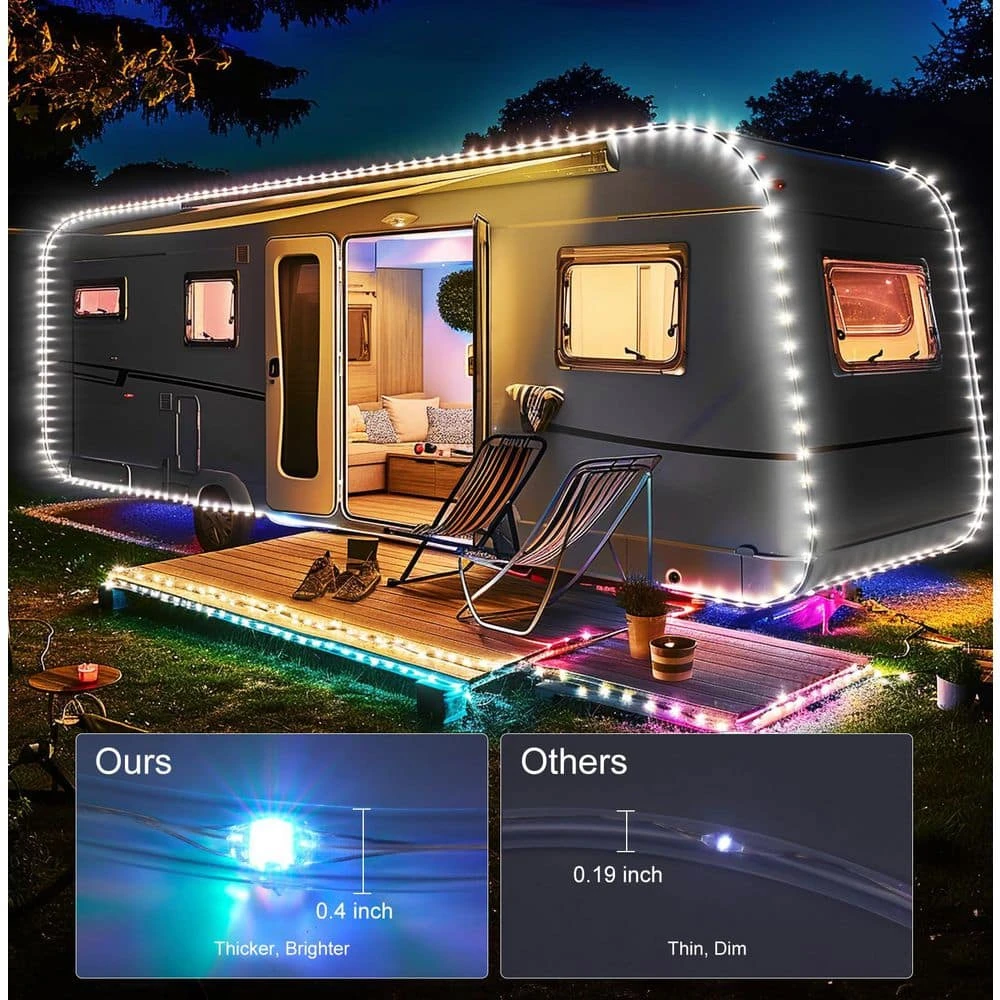 Thick 4-inch diameter rope lights with 24 vibrant colors! Features 12 lighting modes including meteor shower effect and adjustable brightness/speed. IP65 waterproof rating makes them perfect for outdoor use year-round. 33ft length ideal for patios and gazebos.