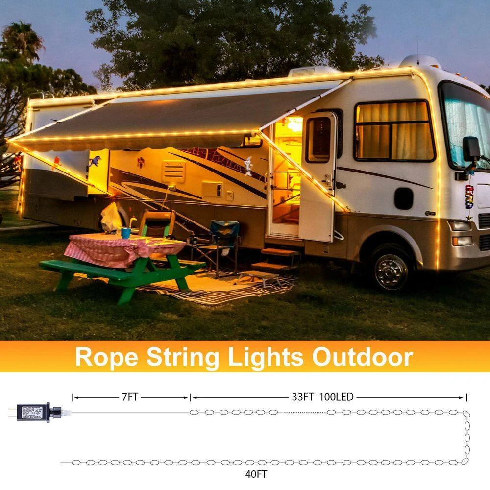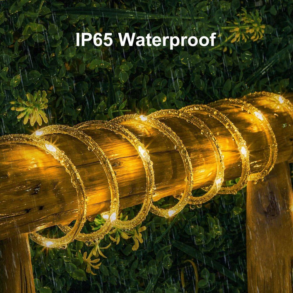 Brighten your home with 100 LED rope lights spanning 33ft! These UL-listed copper-wire lights are safe, energy-efficient, and IP65 waterproof for indoor/outdoor use. Bend the flexible tubing around poles or furniture for DIY decor at parties, weddings, or holidays. Includes a 7ft lead wire for easy installation in gardens, patios, or bedrooms.