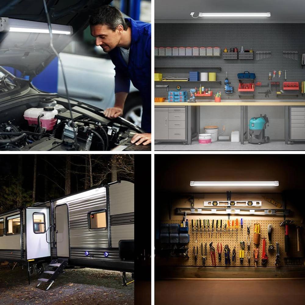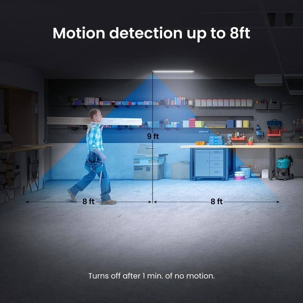 Add 4000K Cool White and 1000 Lumens of light to a variety of applications with Feit Electric’s 7.5-Watt, multi-function, rechargeable battery LED shop lights. They feature an innovative ultra light-weight design that makes them easy to mount and they are fully assembled avoiding extra time-consuming steps. Provide wider coverage with this 4 ft. in any space that needs reliable, vibrant task lighting. These shop lights easily fit into garages, workstations, workshops or other dark locations to provide extra illumination when needed. These lights contain an integrated motion sensor that instantly turns on the light when motion is detected so you won’t have to fumble with switches or ON/OFF summarys when your hands are full compared to other puck lights. You also have the option to turn the light ON/OFF with the attached pull chain on each fixture. with the latest in LED technology, these lights use less power and energy compared to traditional shop lights. Each light is equipped with a rechargeable 100Wh battery which means you won’t need to spend on replacement batteries or plug in the light to power up. Get 13 hours of runtime when set to