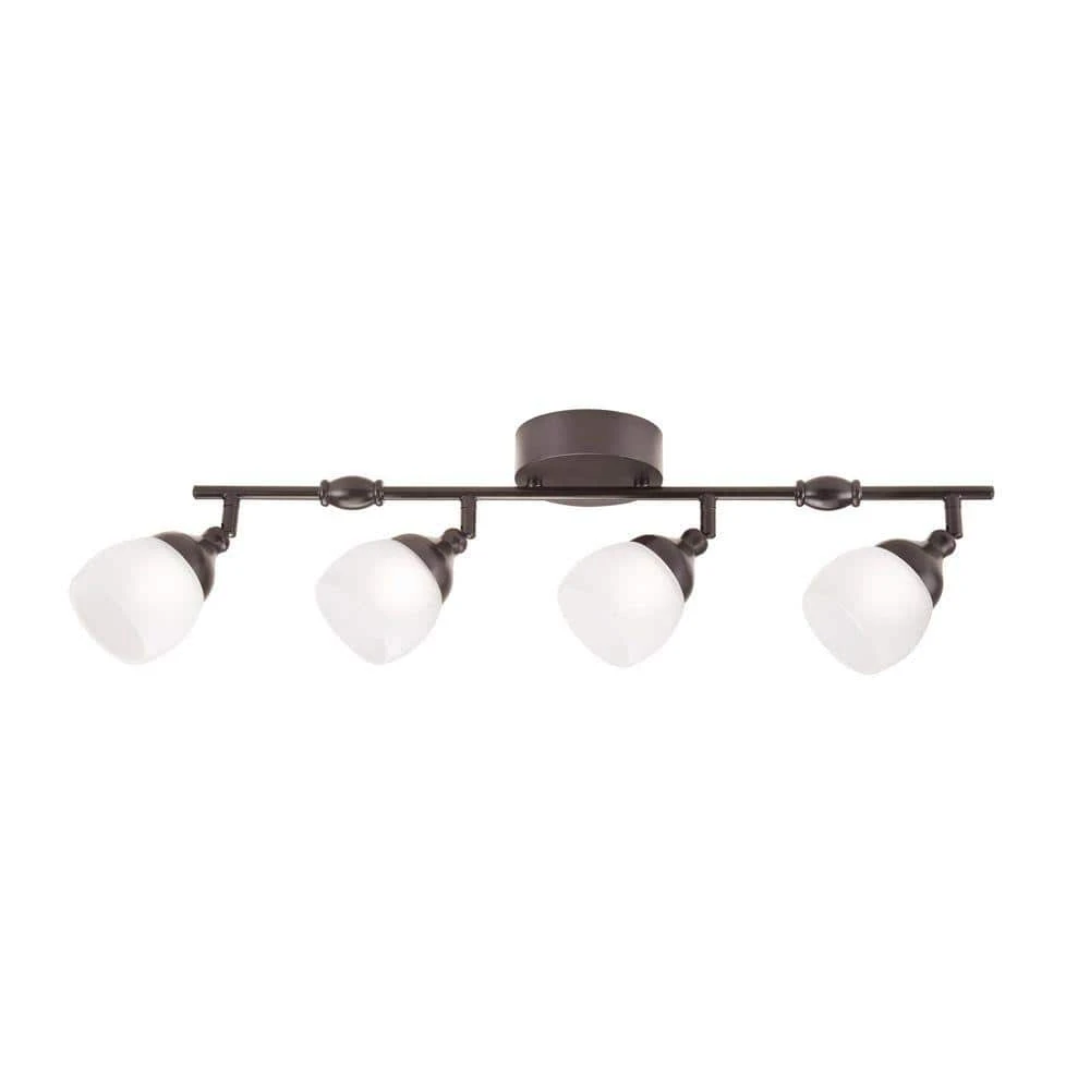 Hampton Bay LED 4-Light Bronze Fixed Track Lighting Kit, features with Straight Bar and Frosted Glass. LED Heads pivot and rotate to direct light where it is needed most. Dimmable, energy saving using 21-Watt, while delivering performance equivalent (4) 35W traditional halogen lights. LED integrated module, maintenance free, no need to replace bulb, saving time and cost. Good choice for decorative location like living room, kitchen, bedroom and other rooms that high-end LED fixture required.