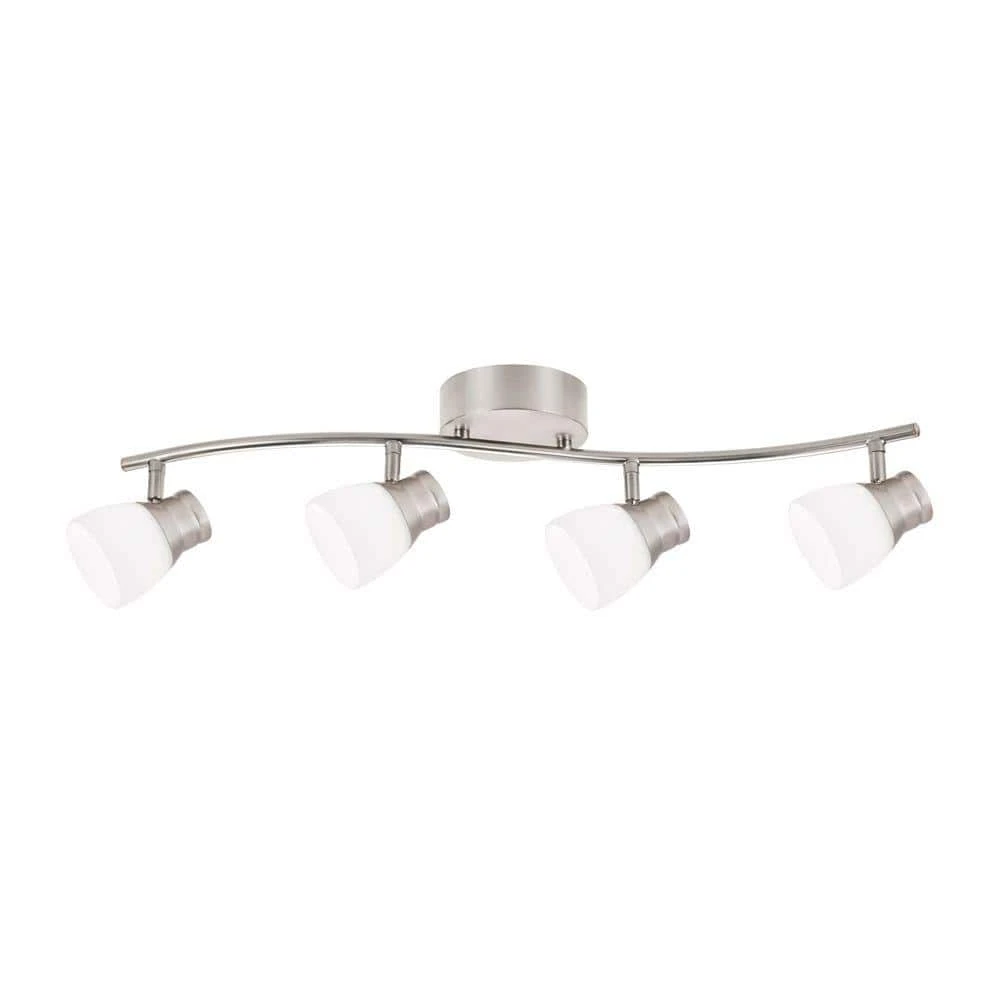 Hampton Bay LED 4-Light Brushed Nickel Dimmable Fixed Track Lighting Kit, Wave Bar Frosted Glass. LED Heads pivot and rotate to direct light where it is needed most. Energy saving using 22 low-Wattage, while delivering high performance equivalent (4) 35W halogen lights.